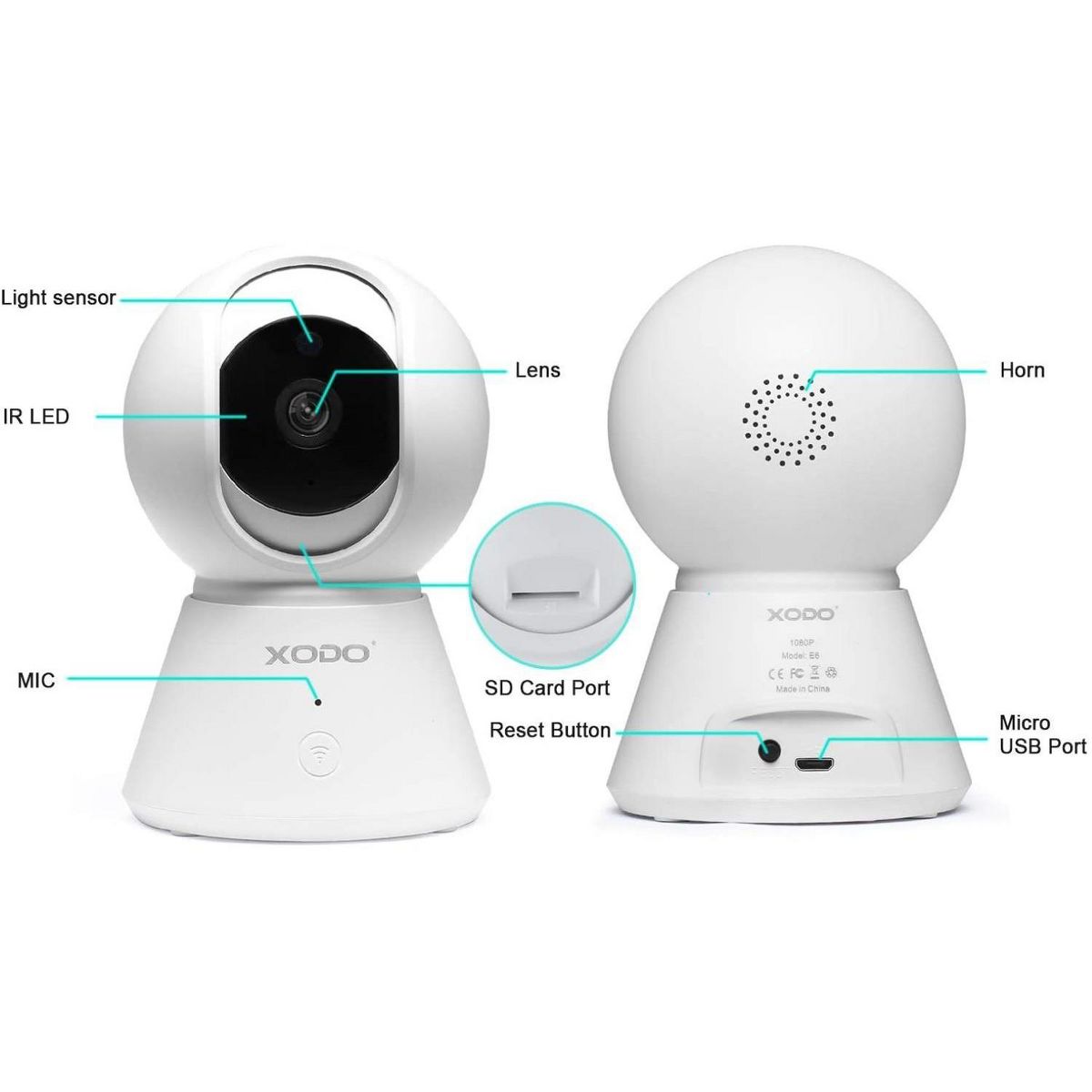 XODO E6 Wireless Security Camera 1080P HD Indoor WiFi Plug-in Cam with 32GB SD Card, Motion Detection, 2-Way Audio, Night Vision
