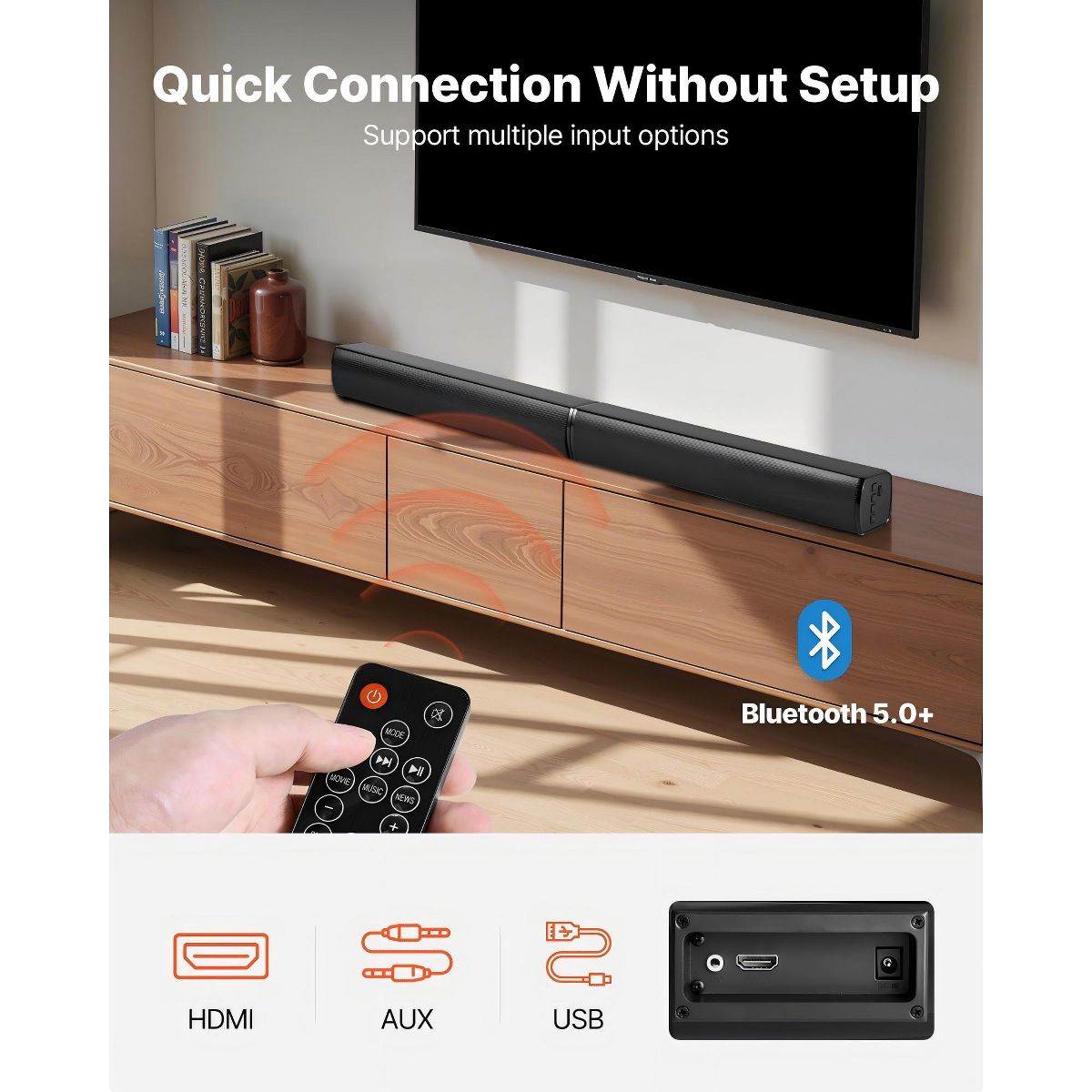 Bluetooth, HDMI, AUX, USB connection support.