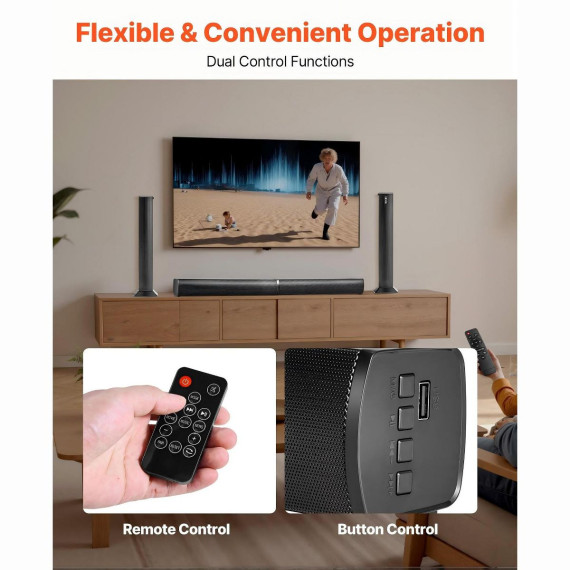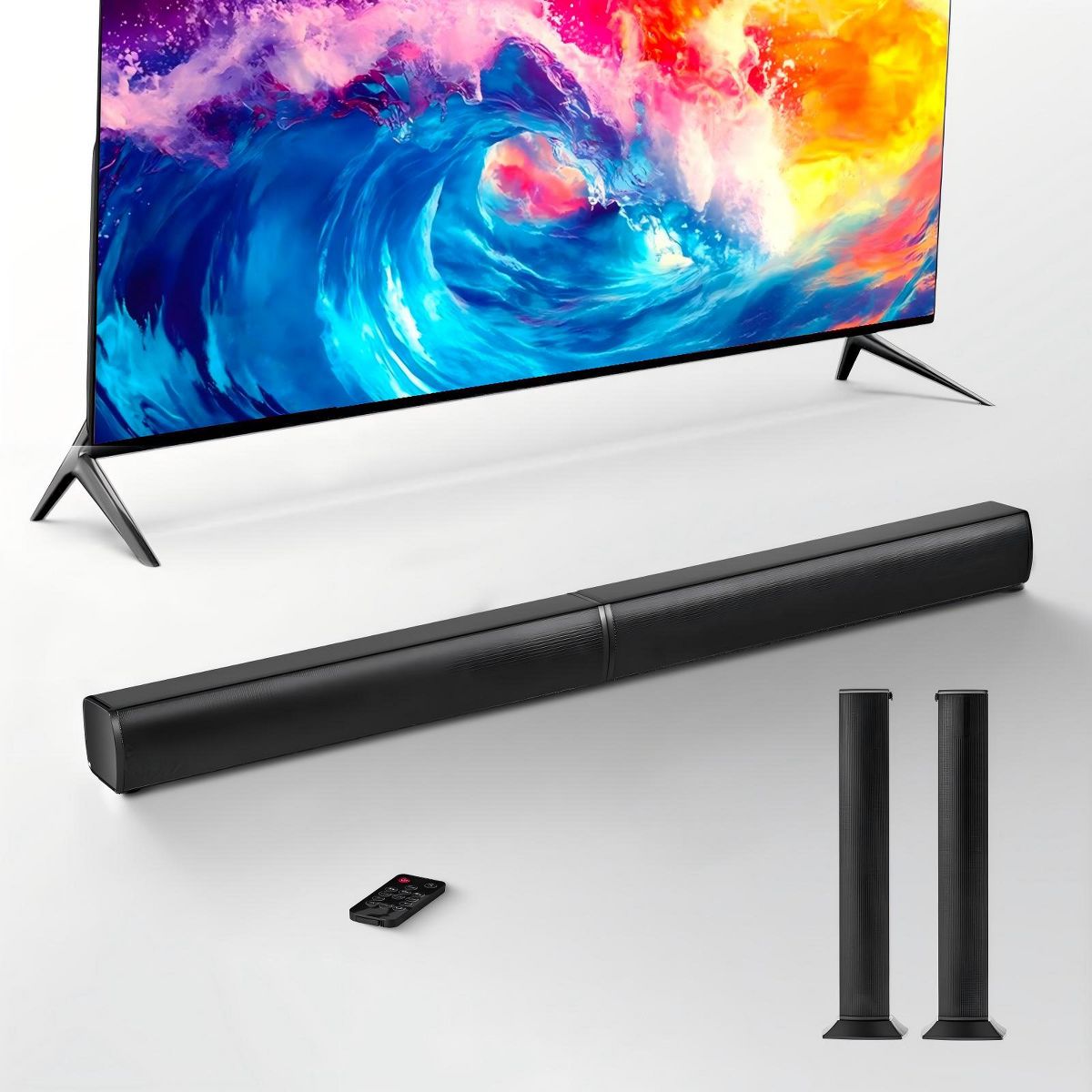Upgrade your TV audio with this 32-inch 2.0 channel sound bar designed for clear dialogue and immersive sound. Featuring an 80W output and a detachable 2-in-1 design, it can be used as a single soundbar or split into two speakers. With Bluetooth and multiple wired inputs, it’s an easy, space-saving audio solution for home entertainment.