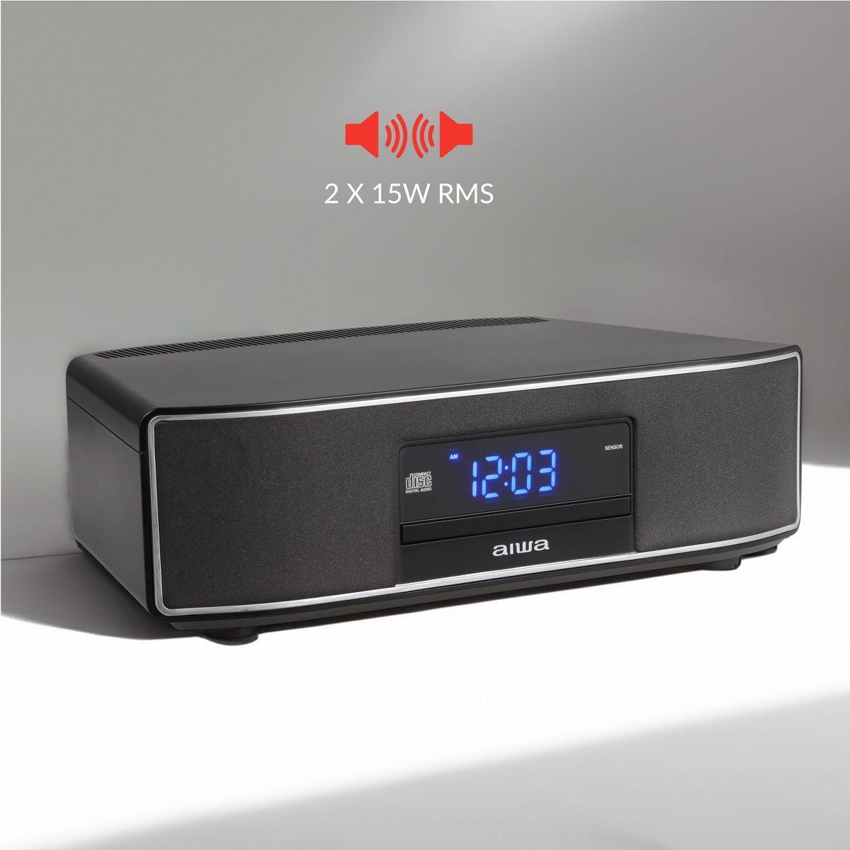 Upgrade your bedroom with the Aiwa Exos Home Bedroom Speaker! There is nothing worse then getting one of those high quality TVs with a subpar sound system, and this solves that problem easily. With an optical digital input (for TVs specifically) we designed our speaker to emit powerful sound within a sleek, home-friendly design. It can go anywhere, and even has a LED digital clock with adjustable brightness. Our speaker can also play CDs and even functions as an FM radio, giving it added utility that the other speakers do not have. Get the Aiwa Exos Home Bedroom Speaker today!