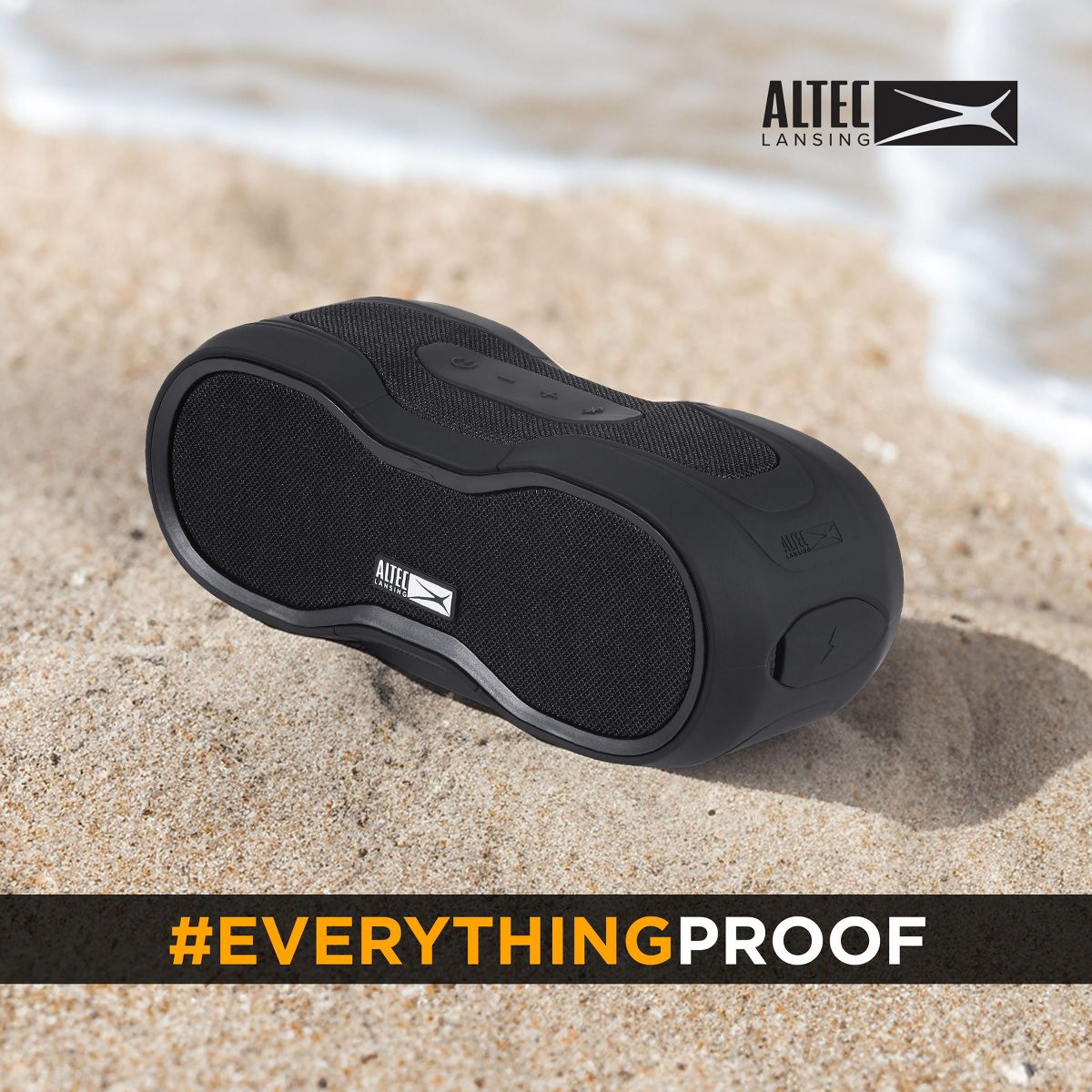 this rugged speaker is not only water-resistant but also dustproof, snowproof, and
