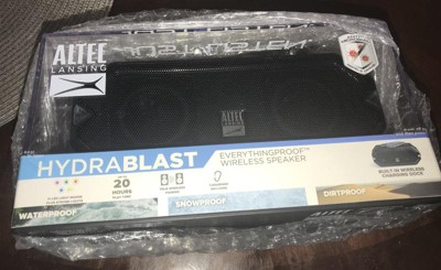 The HydraBlast Everything Proof speaker is the perfect party companion. With up to 20 hours of battery life plus built-in LED light modes, the party atmosphere and music will be hard to top! Qi Wireless charging keeps not only your phone but the party alive, simply drop a Qi-compatible device atop the speaker and watch it charge! Don't have a phone with wireless charging - the HydraBlast comes equipped with a USB smartphone charger for added functionality. With an IP67 Everything Proof rating + Antimicrobial protection (repels 99.9% of bacteria), nothing can stop the HydraBlast. Pair two HydraBlast's together for that surround sound excitement. The party just got better with Altec Lansing!