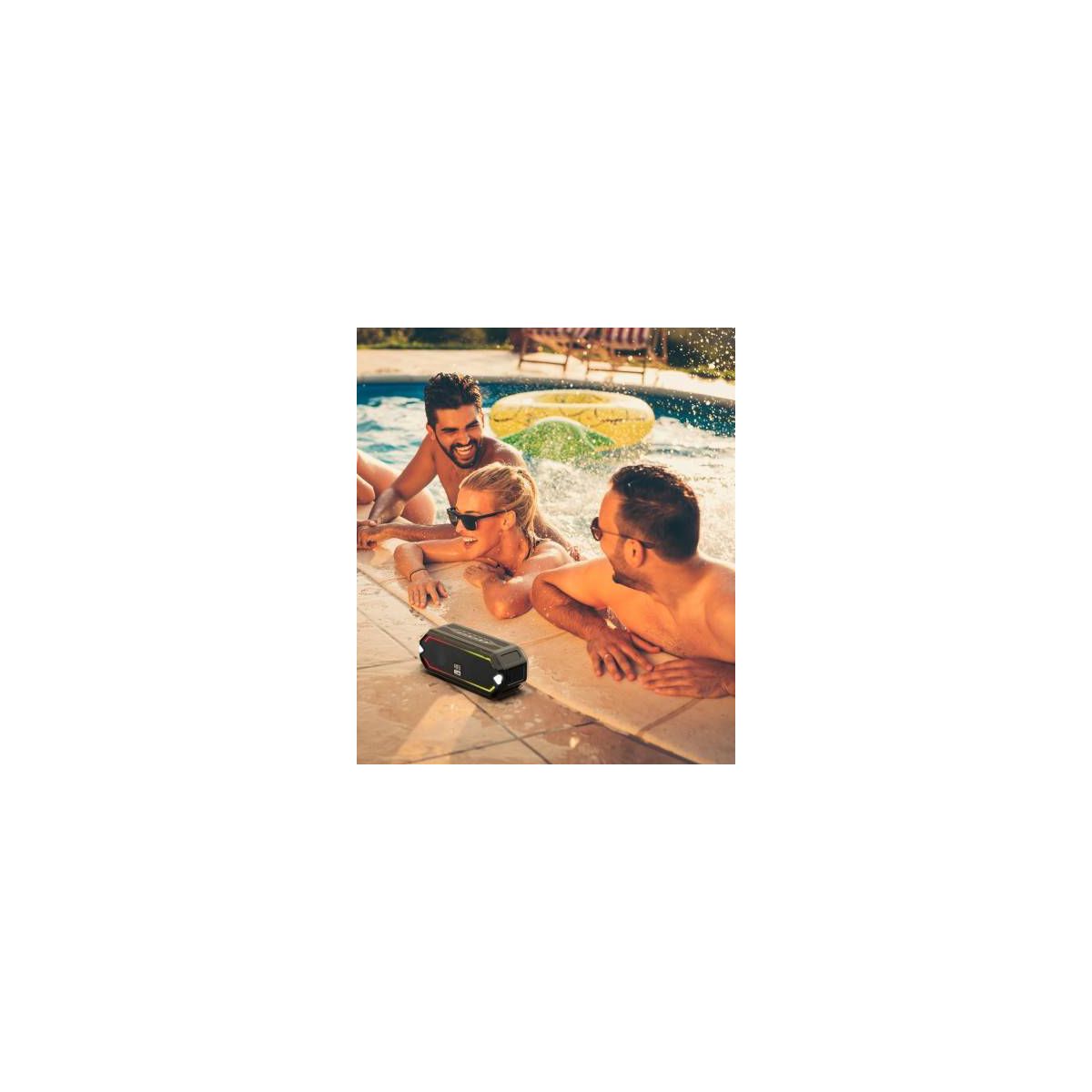 The HydraJolt Everything Proof Speaker is a powerful, portable wireless speaker. It is waterproof, dustproof, shockproof and it floats in water with it's IP67 Everything Proof rating. Antimicrobial protection repels 99.9% of bacteria, so you don't need to fret the germs. A built-in smartphone charger and 16 hours of battery make sure you're connected during every adventure. The HydraJolt has a built-in carabineer that can be clipped to a backpack, duffle bag, or beach chair for tunes on the go! Pair two HydraJolts together via True Wireless Pairing for double the sound! Built-in LED light modes will beat, strobe and pulse to the music for added fun.