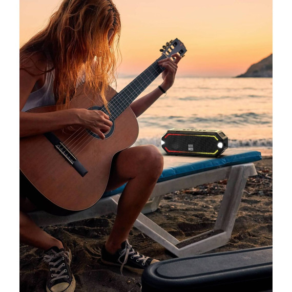 The HydraJolt Everything Proof Speaker is a powerful, portable wireless speaker. It is waterproof, dustproof, shockproof and it floats in water with it's IP67 Everything Proof rating. Antimicrobial protection repels 99.9% of bacteria, so you don't need to fret the germs. A built-in smartphone charger and 16 hours of battery make sure you're connected during every adventure. The HydraJolt has a built-in carabineer that can be clipped to a backpack, duffle bag, or beach chair for tunes on the go! Pair two HydraJolts together via True Wireless Pairing for double the sound! Built-in LED light modes will beat, strobe and pulse to the music for added fun.