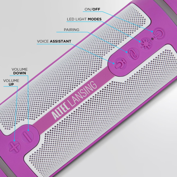 Altec Lansing HydraMotion 2.0 Bluetooth Speaker - Waterproof, 12W, 16H Battery, RGB Lights, USB-C, Voice Assistant