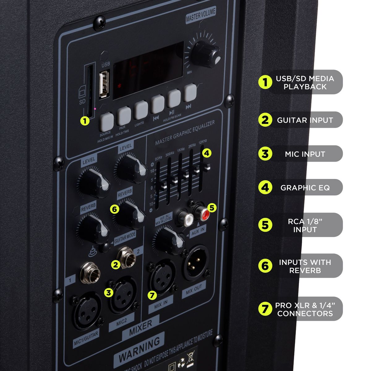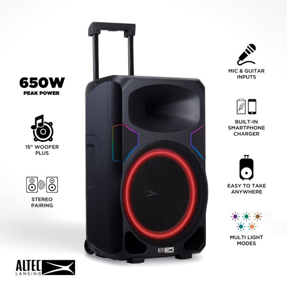 Altec Lansing Portable Speaker SOUNDROVER PRO 650, 650W Peak Power, Bi-Amplified, LED Lighting, Wireless Mic Included