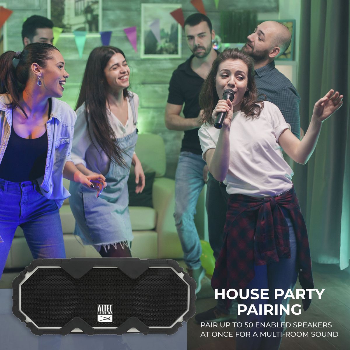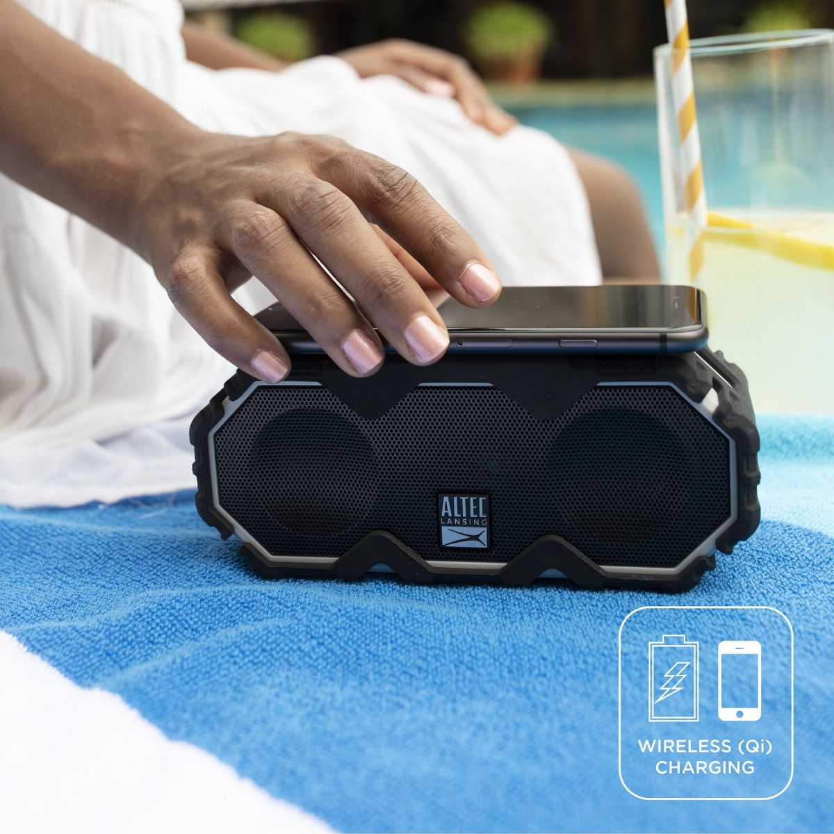 Altec Lansing Super LifeJacket Jolt Waterproof Portable Speaker with Qi Wireless Charging and Customizable Lights