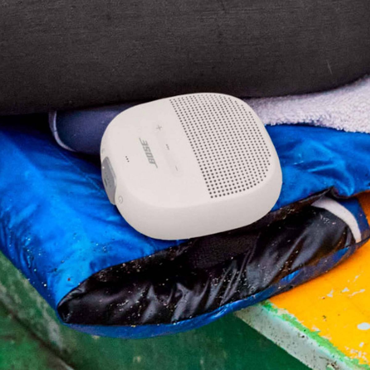 Whether you’re biking with your family, lounging by the beach, or hanging with friends — music makes the moment even better. That’s why the SoundLink Micro portable Bluetooth speaker was designed to keep pace with your life and deliver unmatched sound for its size. Thanks to Bose technology, the SoundLink Micro wireless speaker delivers huge sound and bass, even outdoors. Plus, it has a rugged exterior that resists drops, dents, and scratches. Attach this portable speaker to your backpack or cooler for on-the-go-tunes thanks to the included tear-resistant silicone straps. And it’s waterproof and dustproof, so you don’t have to worry about it getting accidentally wet or dirty. The rechargeable lithium-ion battery in the Bose SoundLink Micro portable waterproof speaker lets you enjoy up to 6 hours of music that’s deep, rich, and full of life so you can keep the dance party going. With Bose SimpleSync ™ technology, pair your SoundLink Micro with another Bose Bluetooth speaker for louder, even more immersive sound. You can also pair your speaker with select Bose smart soundbars. Connect at the press of a button.