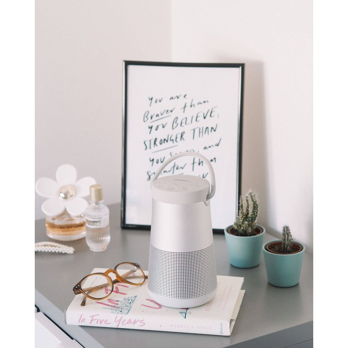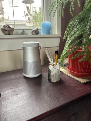 The Bose SoundLink Revolve Plus II Portable Bluetooth Speaker is engineered to spread deep, jaw-dropping sound in every direction. Place it in the center of the room to give everyone the same experience. Or set it near a wall and sound will radiate and reflect around the room, immersing you in that same feeling you felt at your favorite show. The tapered cylindrical shape with a flexible handle makes this wireless speaker easy to grab and go, while a durable aluminum body provides worry-free protection. Great for indoor or outdoor use, with a rechargeable, lithium-ion battery that plays up to 17 hours. And it’s water resistant so you can keep the party going, even if it starts to rain. Voice prompts talk you through Bluetooth pairing, and there’s a built-in speakerphone for calls. Use Bose SimpleSync ™ technology to sync your Bose SoundLink Revolve Plus II to other Bluetooth speakers and headphones around the house. Keep the party going, no matter the room, at the press and hold of a button. Available in Triple Black or Luxe Silver.