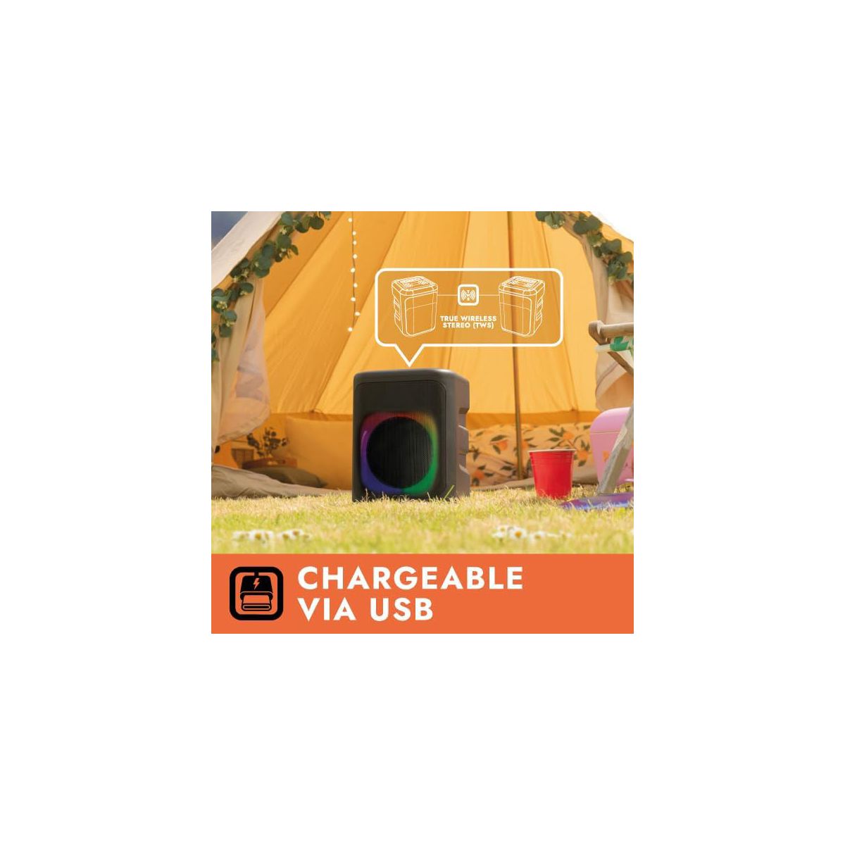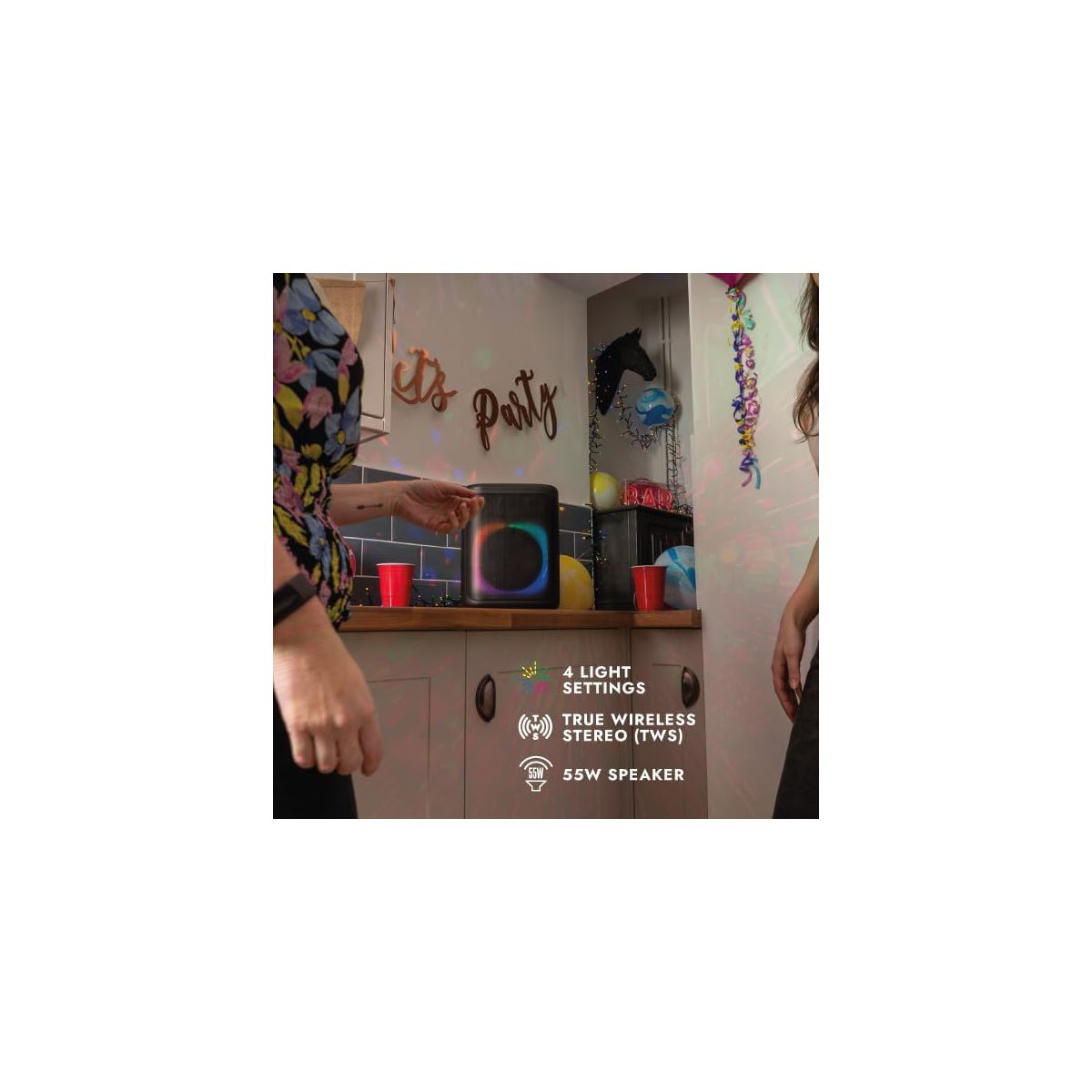 Unleash the ultimate party experience with the Carry-on Soundtrack Portable Speaker. Designed for music enthusiasts who demand powerful sound on the go, this compact speaker transforms any space into a concert-like experience. With its 55-watt output, you'll enjoy crystal-clear audio and deep, resonant bass that brings every beat to life. Whether you're belting out your favorite karaoke tunes, setting the mood with synchronized LED lights, or streaming your favorite playlists wirelessly, this bluetooth speaker for parties combines stunning sound quality with cutting-edge features to make every moment unforgettable