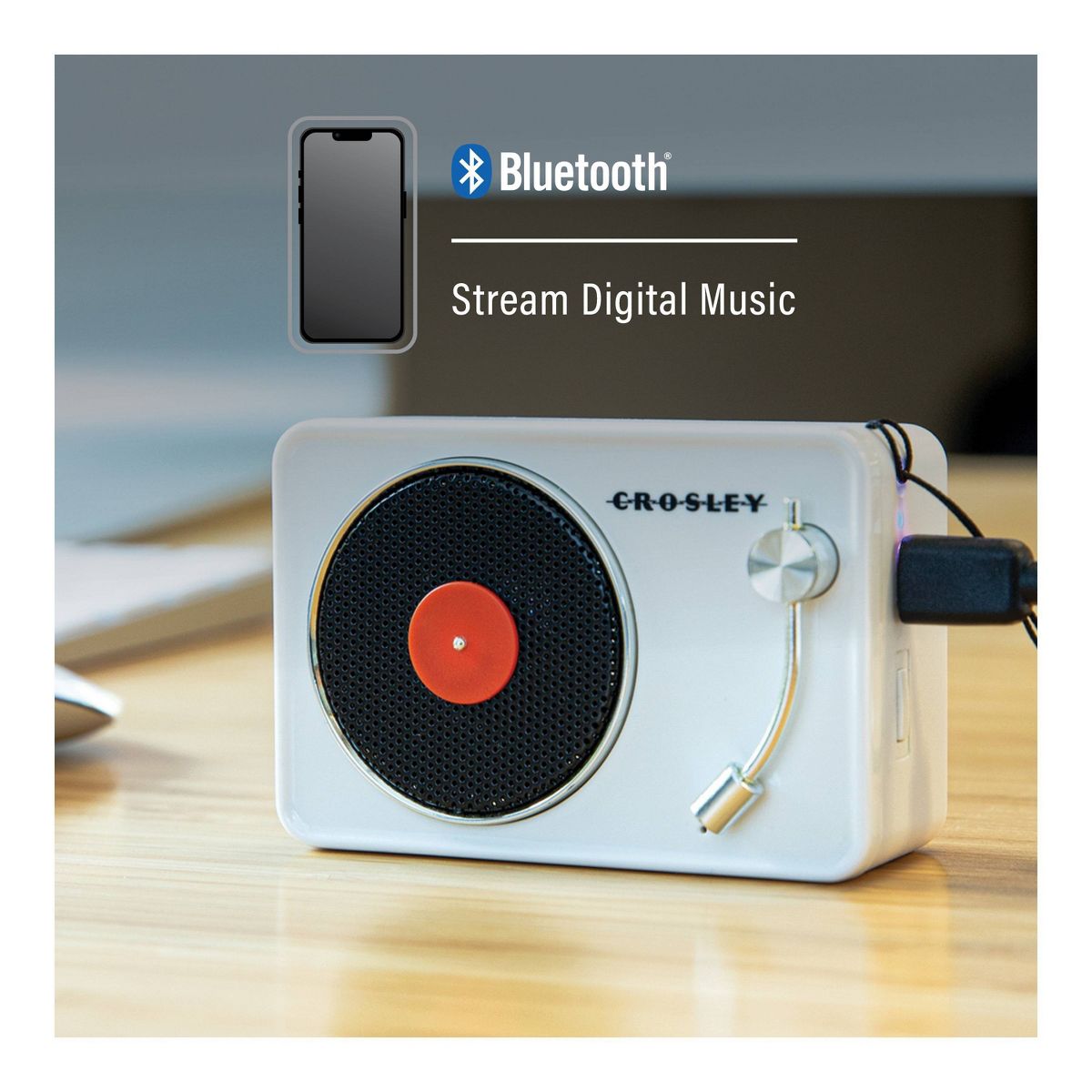 Crosley Mini Record Player Portable Bluetooth Speaker - Tourmaline: USB-C, 8 Hour Battery