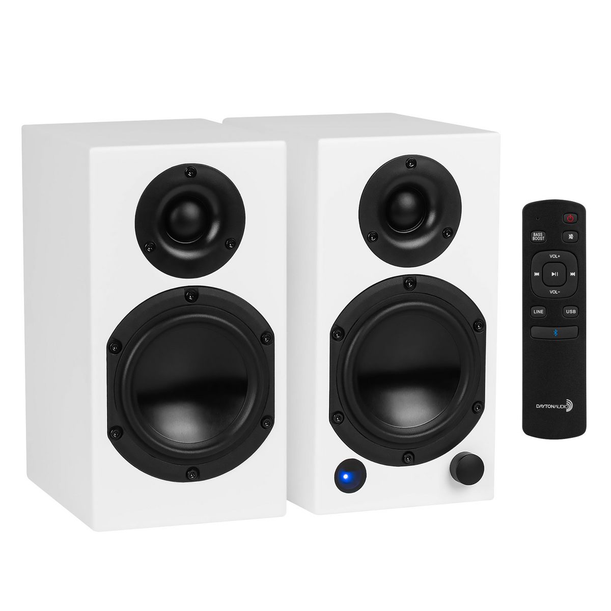 Dayton Audio® M-Series M4 75-Watt-Continuous Bluetooth® Powered Bookshelf Speaker Set with 4-In. Woofers, Hi-Res Audio, and Remote, Pair (Matte Black)