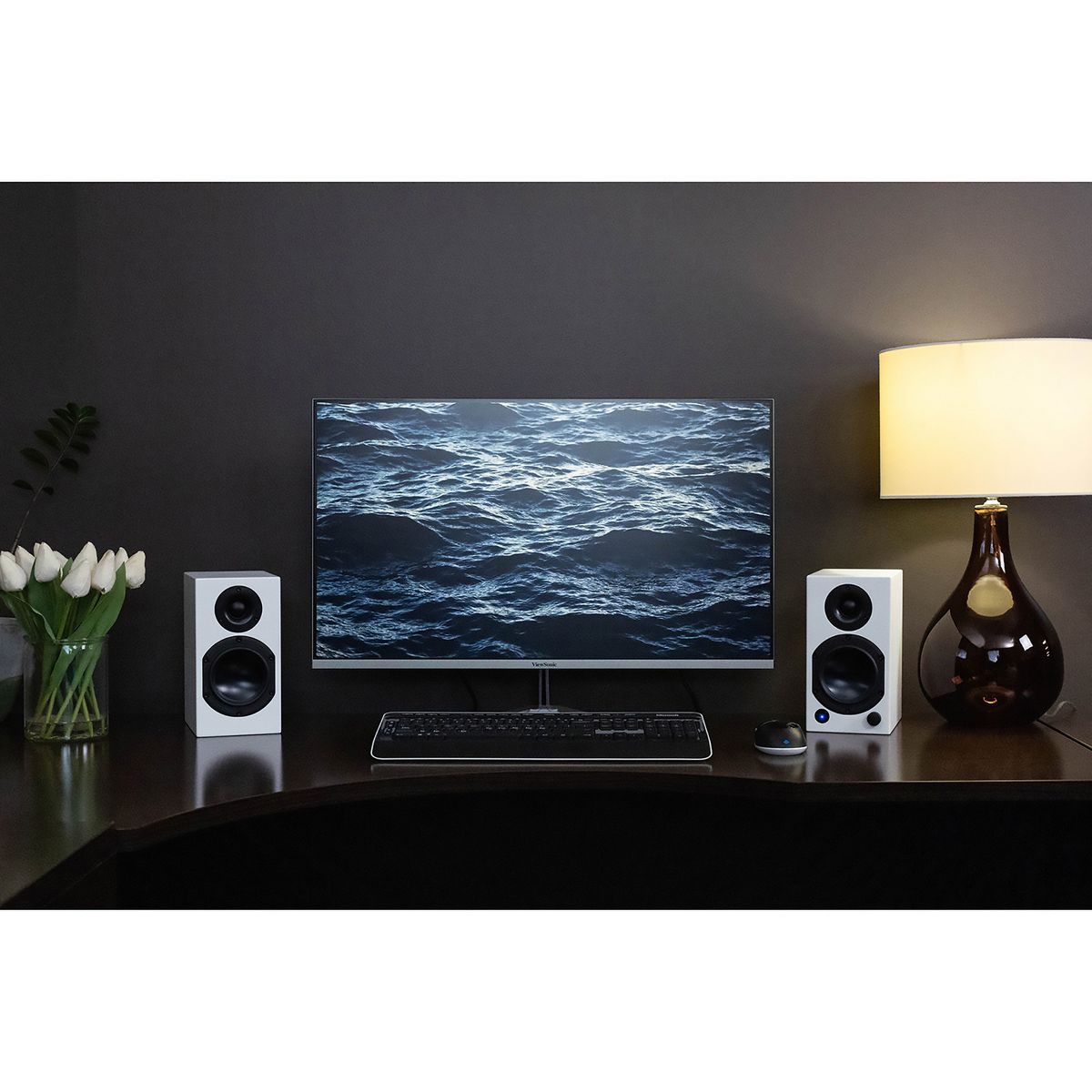 I purchased a pair of white speakers and they look fantastic on my desk without taking up a ton of space. I was using the built-in speakers from my computer monitor and this was the upgrade I needed. setup was super easy and now all of my coworkers are quite jealous.