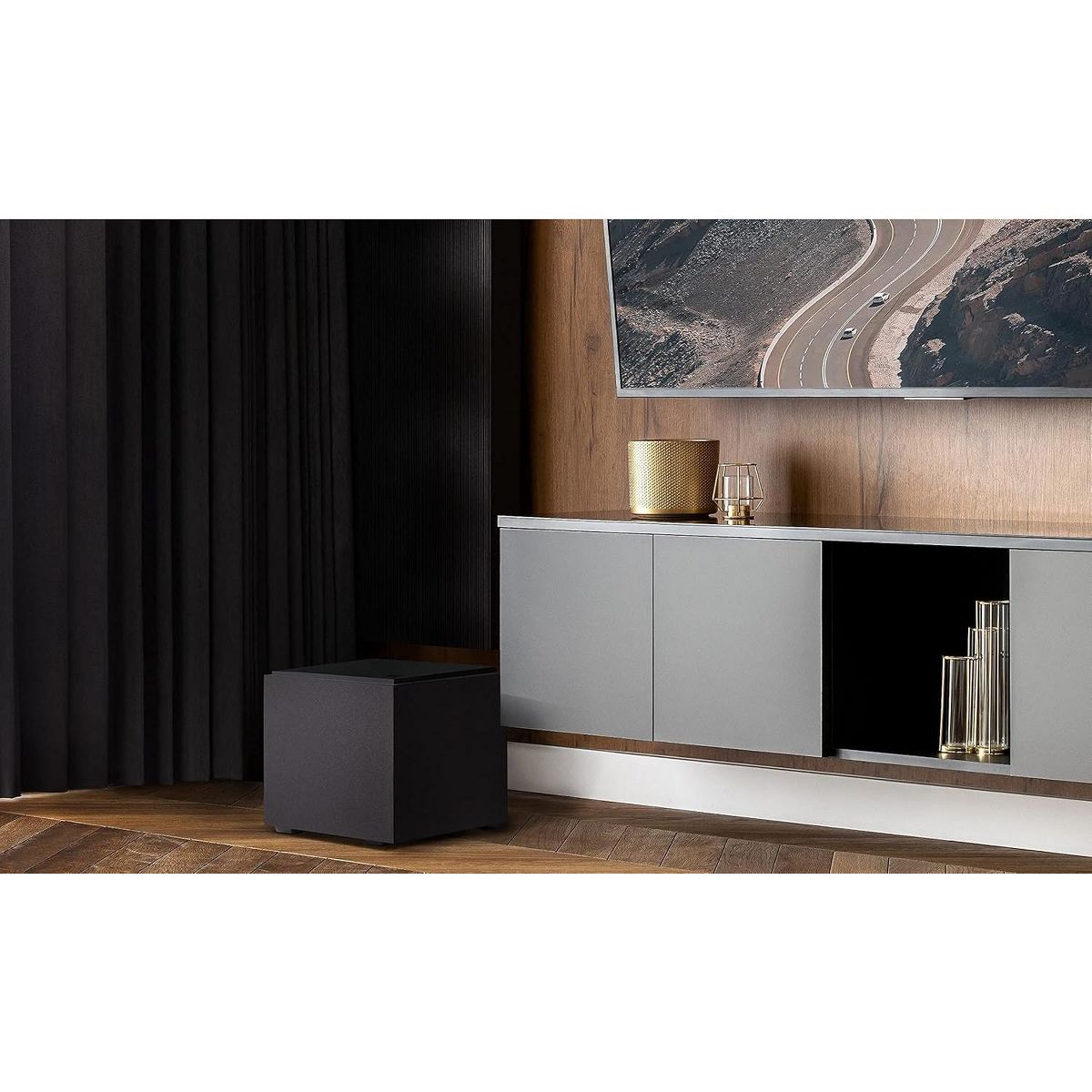 The Definitive Technology Descend DN10 delivers powerful, room-filling bass with its 500W peak Class D amplifier and dual pressure-coupled 10" bass radiators. The innovative 3XR architecture ensures precise digital optimization tailored for both cinematic soundtracks and music playback, eliminating guesswork from subwoofer calibration. This 10" subwoofer integrates seamlessly into any home theater or stereo setup, providing the low-frequency impact that transforms your listening experience. Finished in elegant black, it complements modern entertainment systems while maintaining the acoustic performance serious audiophiles demand