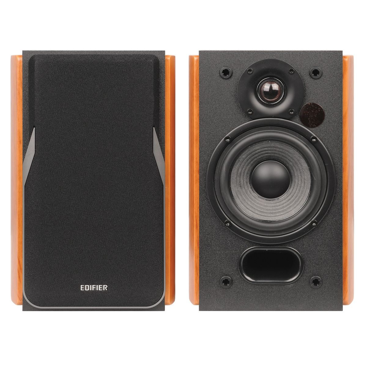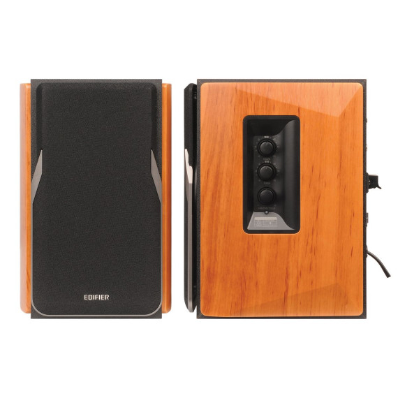 Edifier 42-Watt-Continuous Bluetooth® Professional R1380DB Powered Bookshelf Speaker Set with 4-In. Woofers, RCA/Optical, and Remote, Pair (Brown)