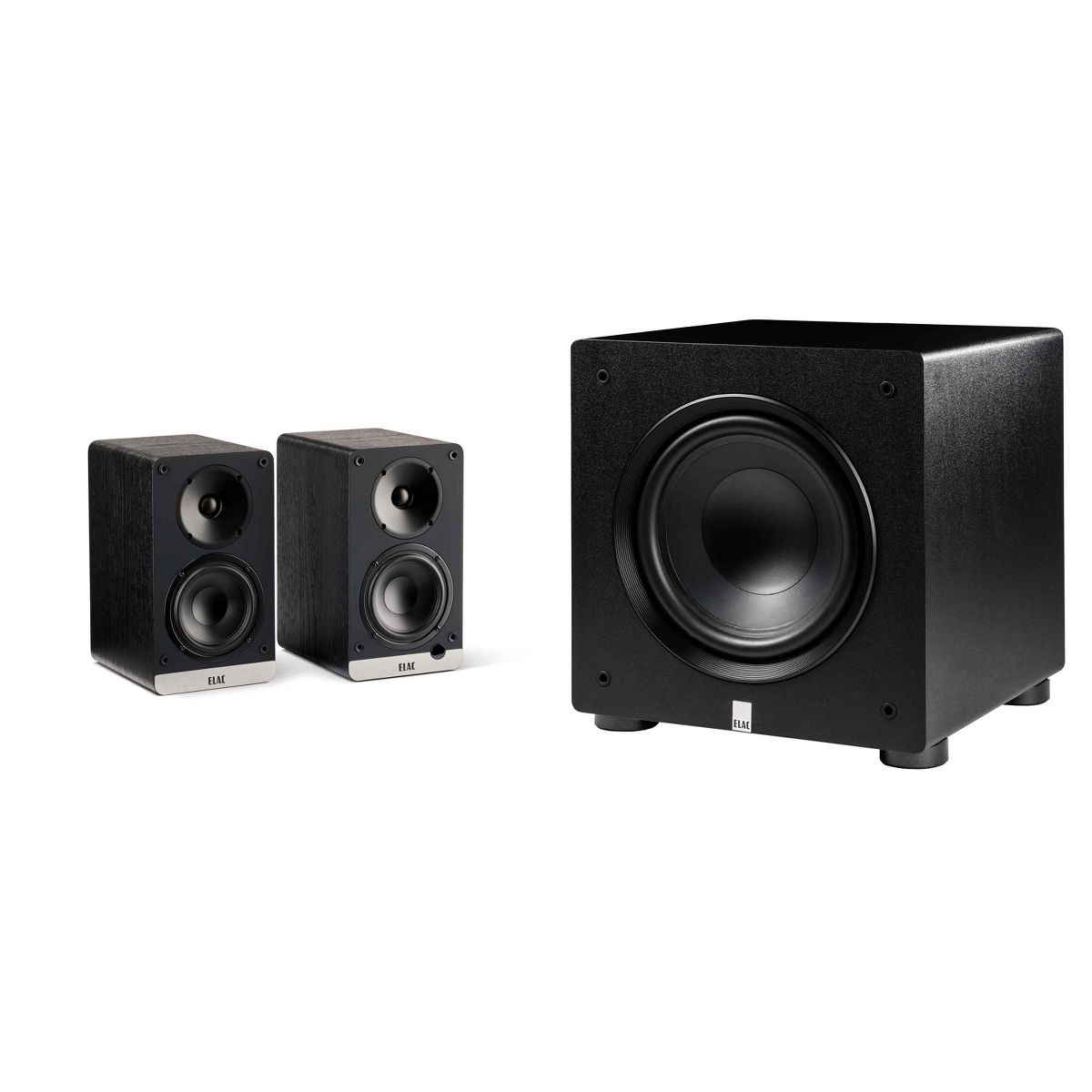 Elac DCB41-BK - Debut ConneX 4.5" Powered Speakers - Black, Pair and Elac PS250-BK - Varro Premium 10" 250 Watt Powered Subwoofer with Auto-EQ