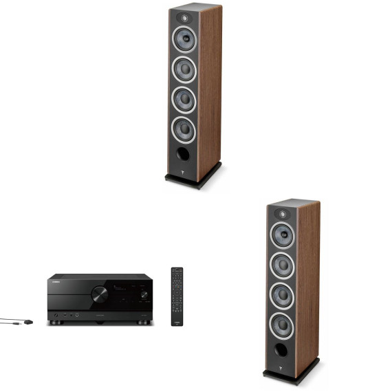 Experience true sound quality with the RX-A8ABL AVENTAGE 11.2-Channel AV Receiver and 2x Focal Vestia No3 Slender 3-Way Floorstanding Loudspeakers in Dark Wood. The RX-A8ABL AV receiver delivers a powerful 11.2-channel surround sound with 150 Watts per channel, supporting Zone 2/3/4. Equipped with 4K120 and 8K60 HDMI inputs and HDR10+ compatibility, it ensures stunning visuals. Enjoy immersive audio with Dolby Atmos and DTS:X support, along with Surround:AI technology for real-time surround sound optimization. The receiver features Dual ESS SABRE ES9026PRO Ultra DACs, YPAO™- R.S.C. calibration, Wi-Fi, Bluetooth, MusicCast, and voice control compatibility with Amazon Alexa, Siri, and Google Assistant. Additionally, it offers a multitude of streaming options and easy IP control setup for convenience. The Focal Vestia No3 Floorstanding Loudspeakers bring dynamic and impactful bass performance with three Slatefiber woofers and a Slatefiber midrange driver. The ‘M’-shaped inverted dome TAM tweeter ensures enhanced treble clarity. These speakers feature an exclusive TAM tweeter, multi-port Powerflow technology to prevent dynamic compression, and an aluminum base for stability. The speakers are elegantly finished in Dark Wood with a leather effect panel. With a 3-way bass-reflex design and meticulous construction, the Focal Vestia No3 speakers deliver exceptional sound quality for both home cinema and hi-fi listening. Enhance your listening experience with these premium, high-performance audio components.
