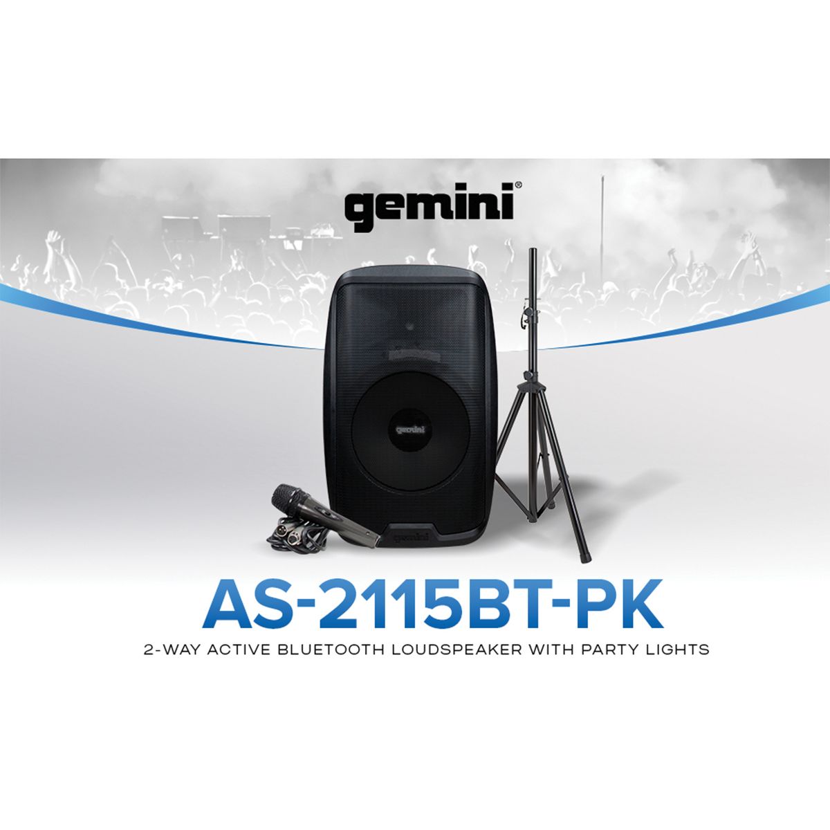 Gemini® AS Series Bluetooth® Portable PA Speaker Kit with Stand and Wired Microphone, Black, AS-2115BT-PK