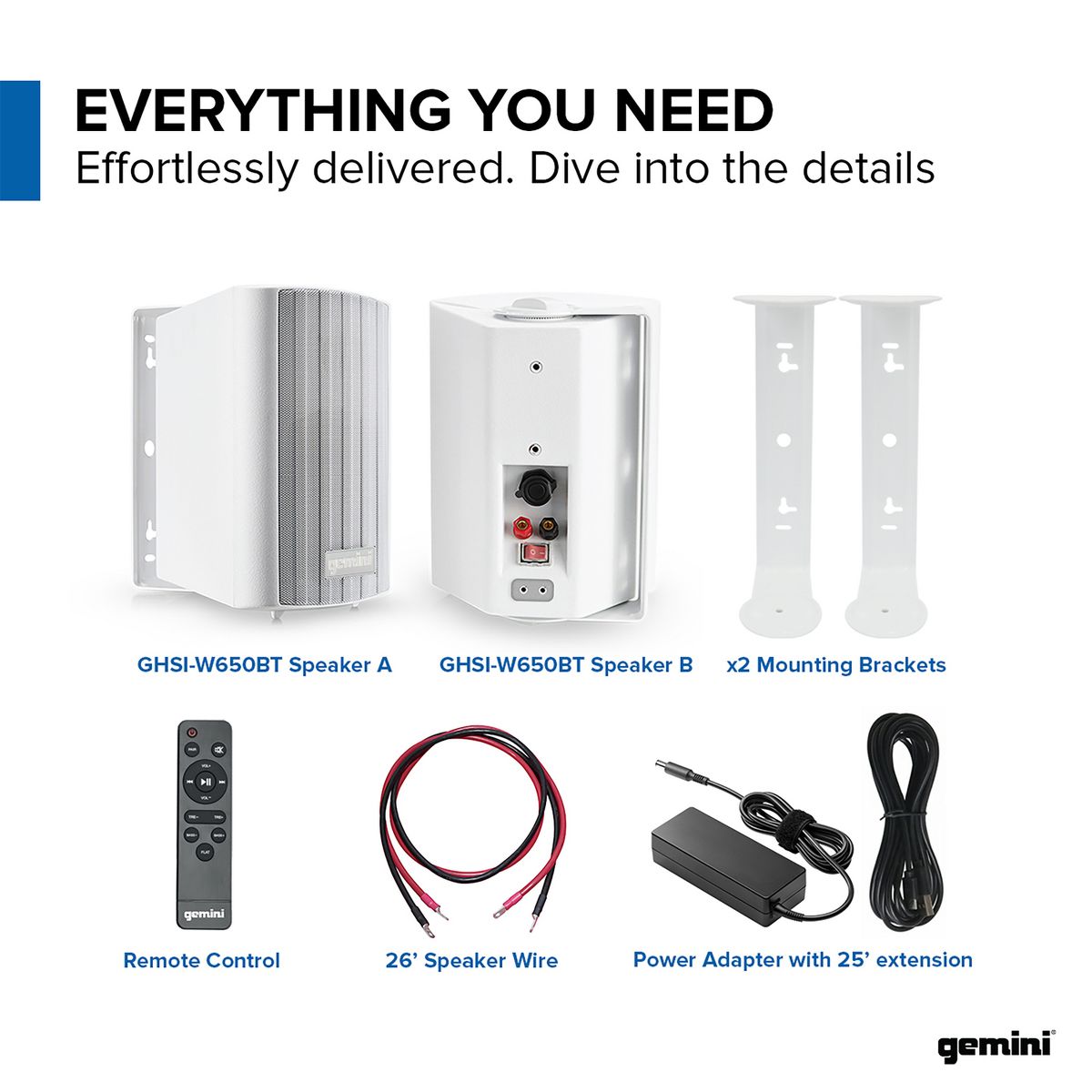 Gemini® GHSI Series GHSI-W650BT-PR Outdoor Bluetooth® 300-Watt-Peak Outdoor Speaker Set with Mounting Brackets and Remote, 2 Count (Black)