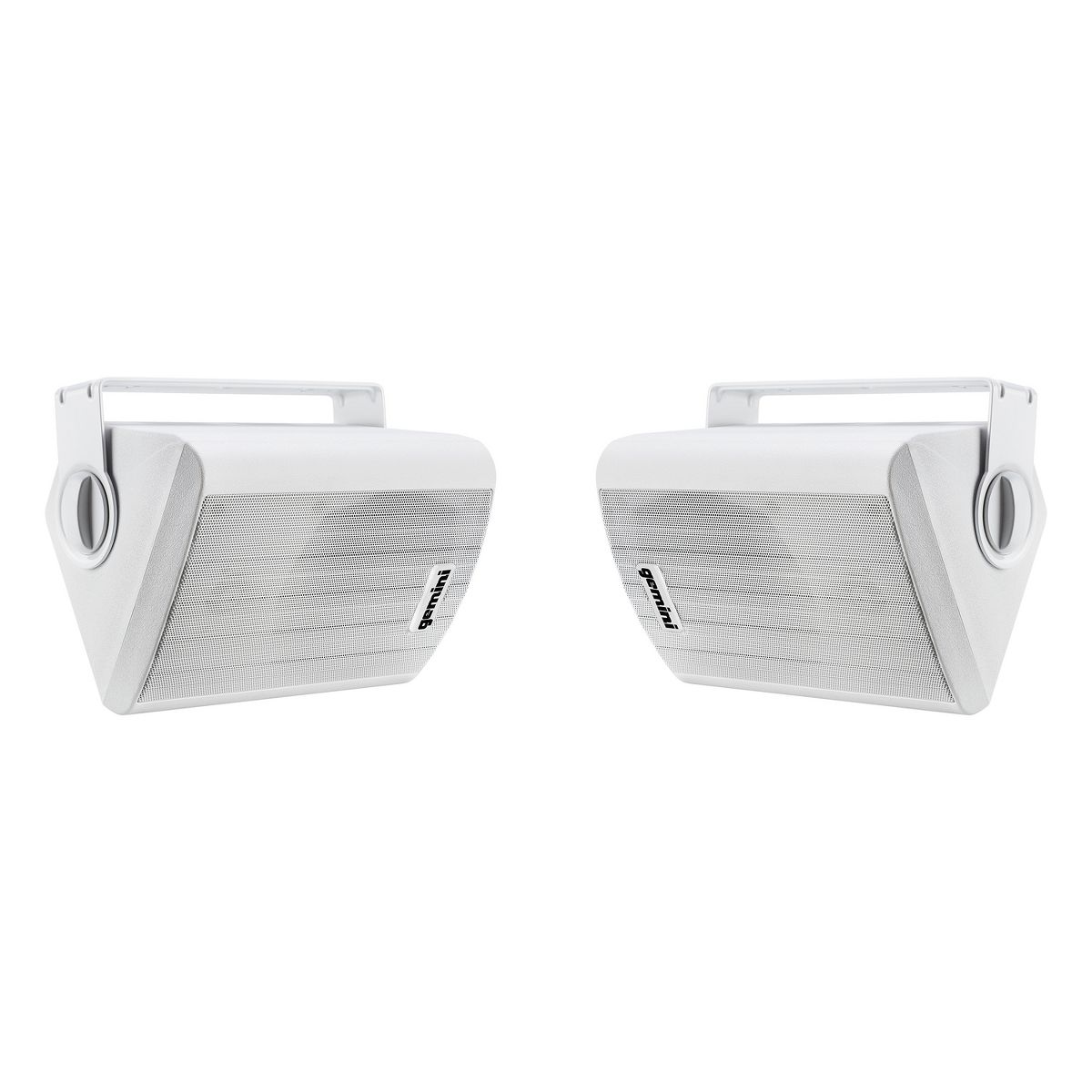 Are you ready to elevate your outdoor audio experience to the next level? The Gemini® GHSI Series of outdoor mountable speaker pairs will add premium sound quality and convenience to your backyard, patio, or even your boat. With a 3.5-mm aux input in addition to Bluetooth® connectivity, you have 2 ways to enjoy your music outdoors. Each speaker features a 6.5-in. woofer and 1-in. tweeter for superior outdoor audio across the frequency spectrum. Whether you're setting the mood in your backyard, hosting an event on your patio, or rocking out on your boat, these speakers have got you covered. Their IP44 waterproof rating ensures they can withstand the elements, so you can leave them outside without worry. The adjustable mounting brackets make installation a breeze while optimizing sound dispersion as you can mount them horizontally or vertically. Connect effortlessly via Bluetooth® or the aux input and take control with the included wireless remote. Use the aux output to expand your system, allowing you to daisy chain several units together! These speakers are expertly tuned for outdoor use, delivering immense sound from a compact package.