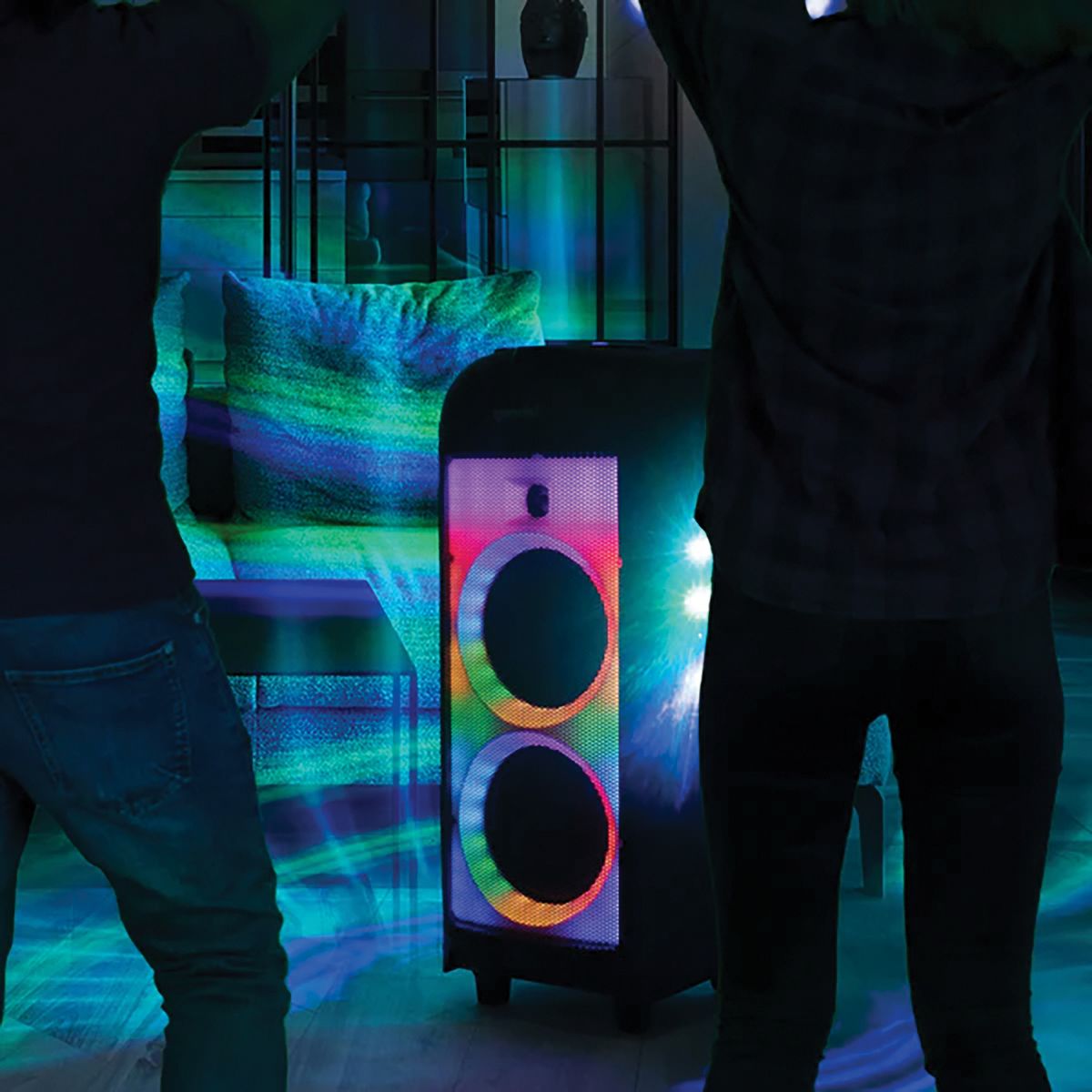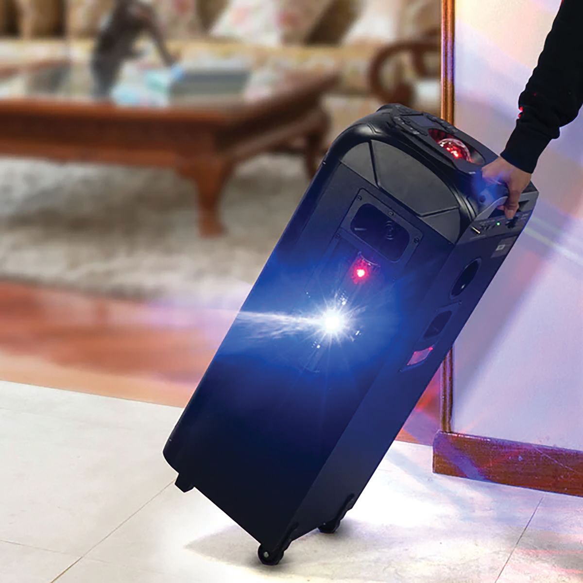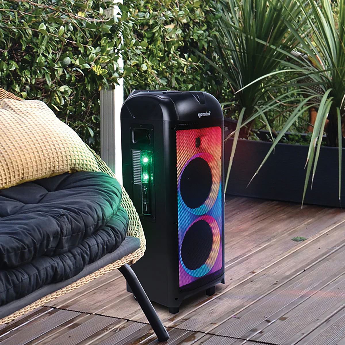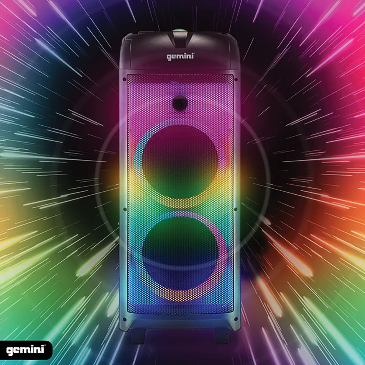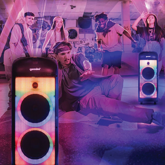 The Gemini GPLT-360 is a Bluetooth Speaker System with dual 8-in. woofers and 3 tweeters plus a rear port for 360° sound. The speaker is equipped with beat-synced LED grille lights as well as Disco Party lighting on the top, sides, and rear for 360° lighting effects, turning any space into a lavish display of light and sound. This portable Bluetooth speaker can deliver 1,000 watts peak power for huge sound with X Drive Bass Boost function to really shake the room. Enjoy many hours of use with a built-in long life, rechargeable lithium battery. The on-board Media Player allows for playback via USB, plus there’s Bluetooth streaming, FM radio, and an 3.5 mm aux line in for external sources. The GPLT-360 also includes wired microphone and guitar inputs with equalization controls and echo effect. Volume, lighting, and media control buttons on top of unit and the included remote put the control at your fingertips. You can also pair a second GPLT-360 speaker (sold separately) via TWS for True Wireless Stereo connection. This Bluetooth speaker system is lightweight yet rugged and ergonomic handles plus wheels provide easy portability. The GPLT-360 will bring life to any party no matter the occasion!