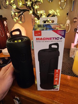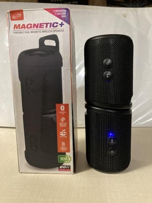 Pump up the music with this magnetic speaker pair from iLive! The Magnetic+ Portable Bluetooth® Stereo Speakers are outfitted with true wireless stereo, so you can take these speakers on the go while keeping a crystal clear connection to your device. Stack them on top of each other to double the sound delivery or place them around the room to create an enveloping musical experience. With a rubberized design and up to 10 hours of battery life, you can hit the road with peace of mind knowing these speakers can go the distance.