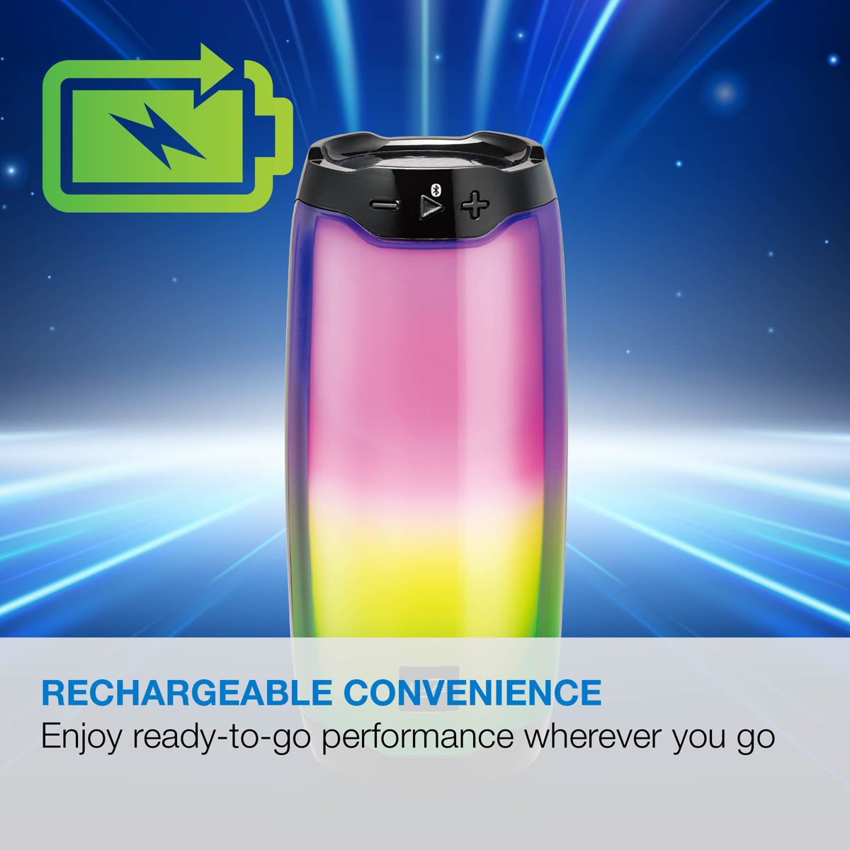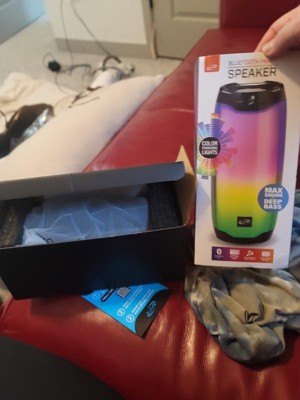 See the color of music! This speaker’s uniquely designed LED body and rich sound combine to create a unique music experience. Connect your phone using Bluetooth 5.0, Micro SD or USB drive to play your tunes out loud. Create a cohesive concert and light show by setting the LEDs to react to the rhythm of the music playing.