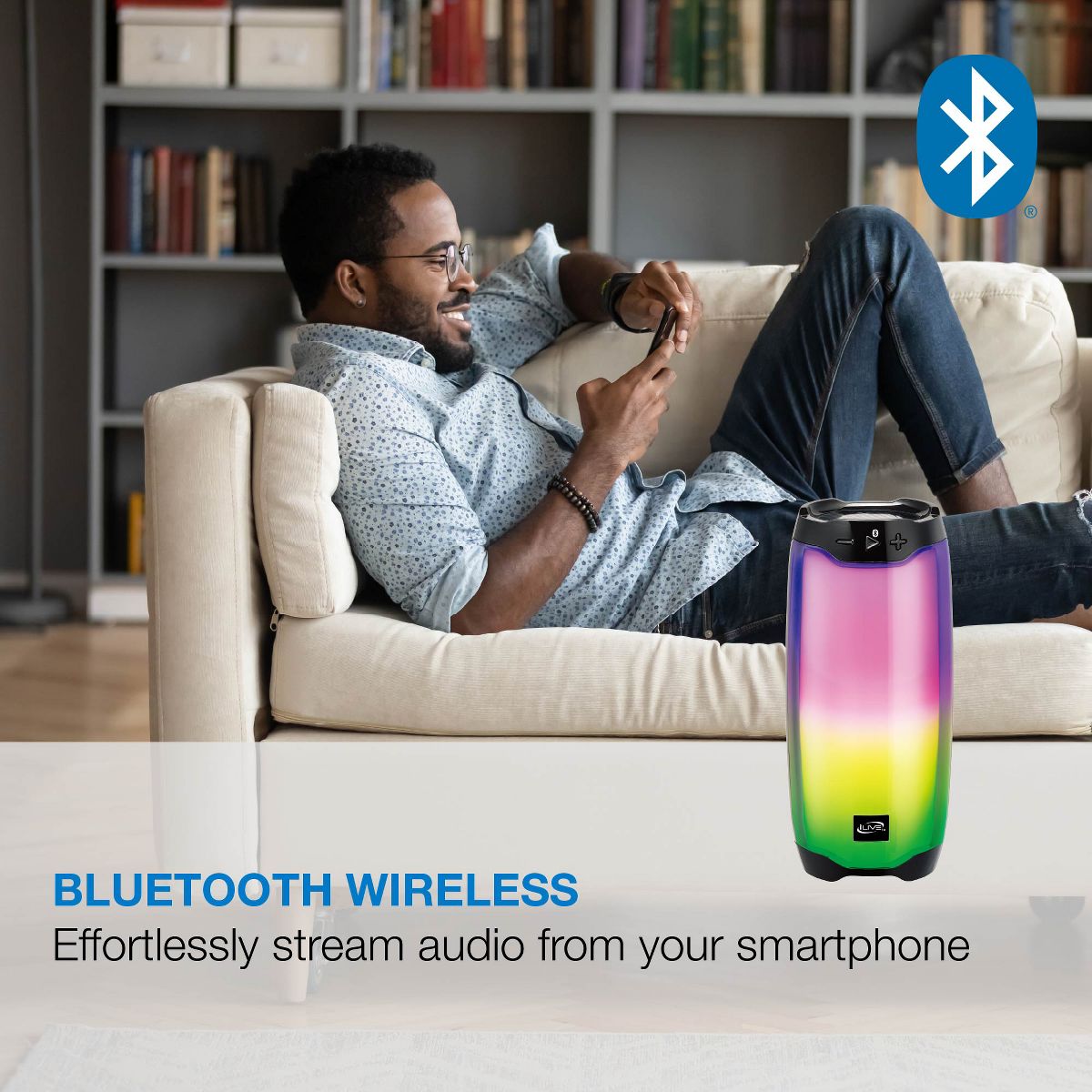 iLive Portable Bluetooth Party Speaker with LED Color Changing Effects, ISB212BLK