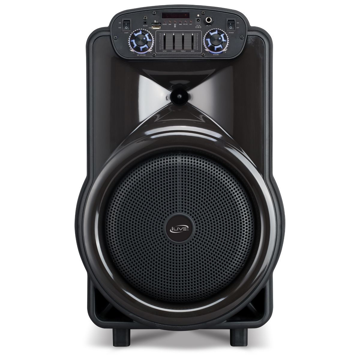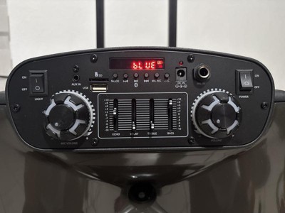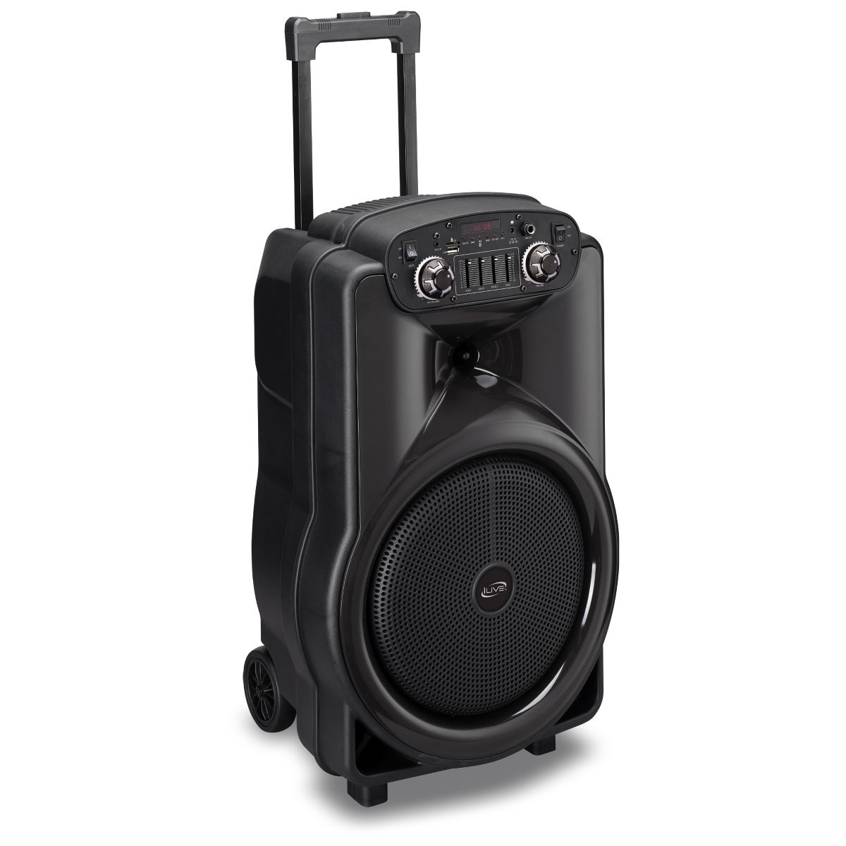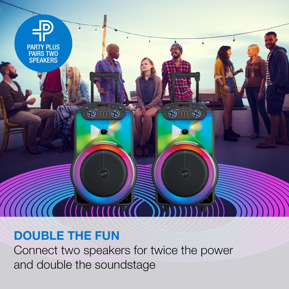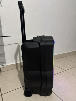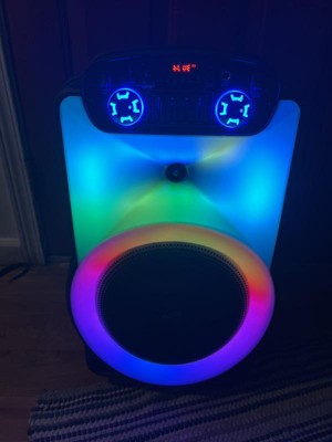 Put your sound on blast with The Show Wireless Speaker System. The retractable handle and roller wheels make taking your party on the road a breeze. Mesmerizing LED light effects add an extra level of production value to your musical performance. And with the microphone input, you can feel empowered to put on a show of your own.