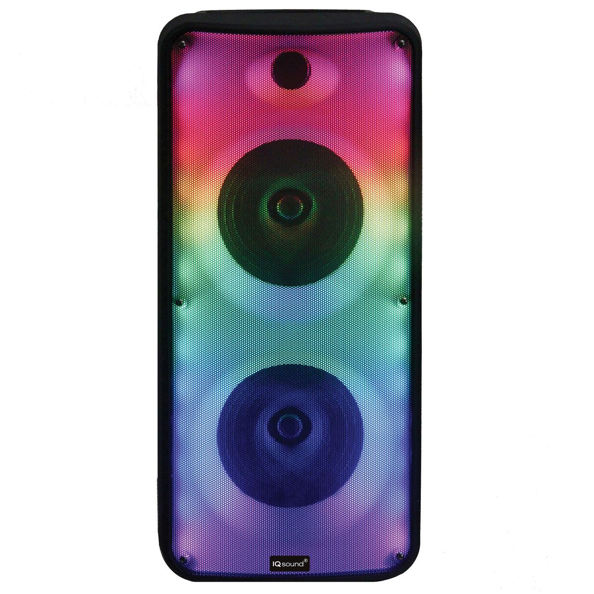 Experience unparalleled audio performance with the IQ Sound® IQ-7188DJBT 2 x 8-In. Portable Bluetooth® Speaker. Engineered for durability, flexibility, and exceptional sound quality, this speaker system is your ultimate choice for home entertainment, seminars, or any event venue. Featuring two 8-in. portable Bluetooth® drivers, the IQ-7188DJBT delivers powerful, room-filling sound that will elevate any gathering. Thanks to its built-in Bluetooth® compatibility, enjoy seamless wireless connectivity to your favorite Bluetooth®-enabled devices, while TWS (True Wireless Stereo) technology allows you to connect a second like speaker (sold separately) for double the audio output. Illuminate your party with the mesmerizing FIRE LIGHT SHOW as colorful LED lights dance and pulse to the beat of your music, creating an electrifying atmosphere. USB, microSD™ Card, and aux inputs offer versatility, allowing you to connect non-Bluetooth® external audio devices, while FM radio and a dedicated microphone input enhance your entertainment options. Complete with a remote control for convenient operation and including 1 wired microphone, the IQ-7188DJBT ensures hassle-free setup and control. Powered by a rechargeable 1,800-mAh battery, this speaker delivers long-lasting performance wherever you go. Elevate your audio experience with the IQ Sound® IQ-7188DJBT and enjoy immersive sound quality like never before.