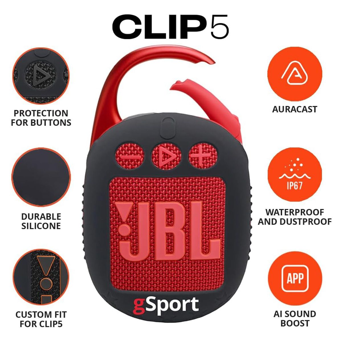 •Clip 5 Ultra Portable Bluetooth Speaker with gSport Silicone Sleeve