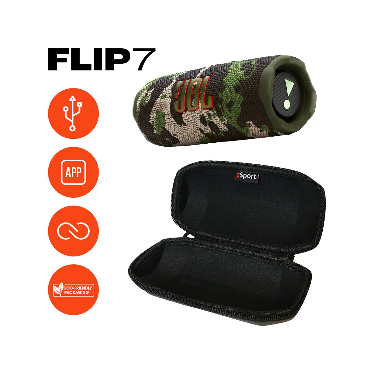 Bold sound for every adventure and the soundtrack to your life right in the palm of your hands. The JBL FLIP 7 is undefeated JBL sound that travels with us wherever we go. Because music has no boundaries and neither should we. Whether we’re hosting a beach party relaxing in your backyard or setting the mood for a cozy night in the FLIP 7 is designed to enhance any experience anywhere life takes us. And now your signature sound is bigger and bolder than ever thanks to JBL’s AI Sound Boost. The end result? The FLIP 7 leaves your friends and family wondering where all that big glorious sound could possibly be coming from. But it’s not just pretty and powerful. The FLIP 7 takes a beating without missing a beat boasting industry-leading IP68 waterproof dustproof and drop-proof. Plus with new Playtime Boost we can enjoy up to 16 hours of playtime—because the moment should only ever stop on your terms. Wouldn’t it be great to share the sweet sound of JBL far and wide? Now we can. Effortlessly connect with other Auracast-enabled JBL speakers to cover more ground (and more ears) with the same playlist whether we’re touring the town with your cycling crew or extending your dinner party to the back patio and the front yard. In short this is not the average portable speaker. It’s a pint-sized audio boss. Our Exclusive Bundle includes a gSport Carbon Fiber protective hardshell carrying case that holds your JBL FLIP 7 and its accessories.