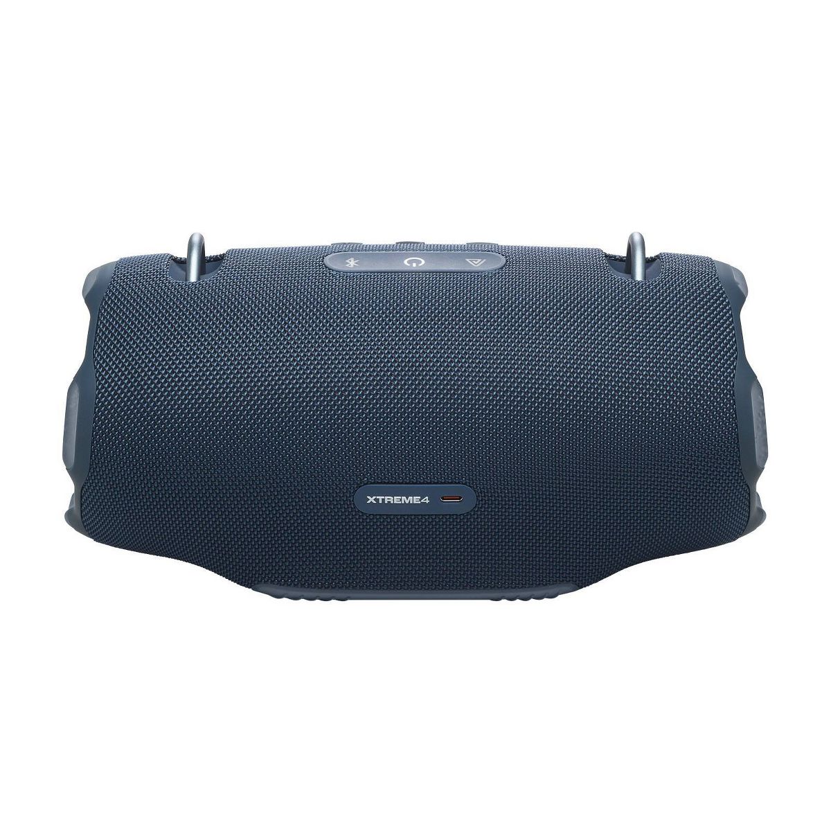 It's time to live loud! The JBL Xtreme 4 portable waterproof speaker delivers next-level massive JBL Pro Sound with amazing dynamics, even at top volume, thanks to two powerful woofers and two tweeters. Dual pumping JBL passive radiators give you deeper bass that moves you. Want to take your music outside? The handy shoulder strap makes it easy, while the rugged rubber bumpers and IP67 waterproof and dustproof rating mean that a sudden downpour or a dunk in the lake won't stop the fun. When it's time to create an even bigger audio experience, pair two Xtreme 4s for stereo sound. Or for your next party, use Auracast to connect the Xtreme 4 with any compatible JBL portable speakers, so your friends lounging poolside will vibe to the same playlist as the ones chatting indoors. 24 hours of playtime and a convenient power bank for your device mean you won't have to recharge until morning. All this, plus it's made with recycled plastic and recycled fabric. The JBL Xtreme 4 brings thrilling sound with you—everywhere.