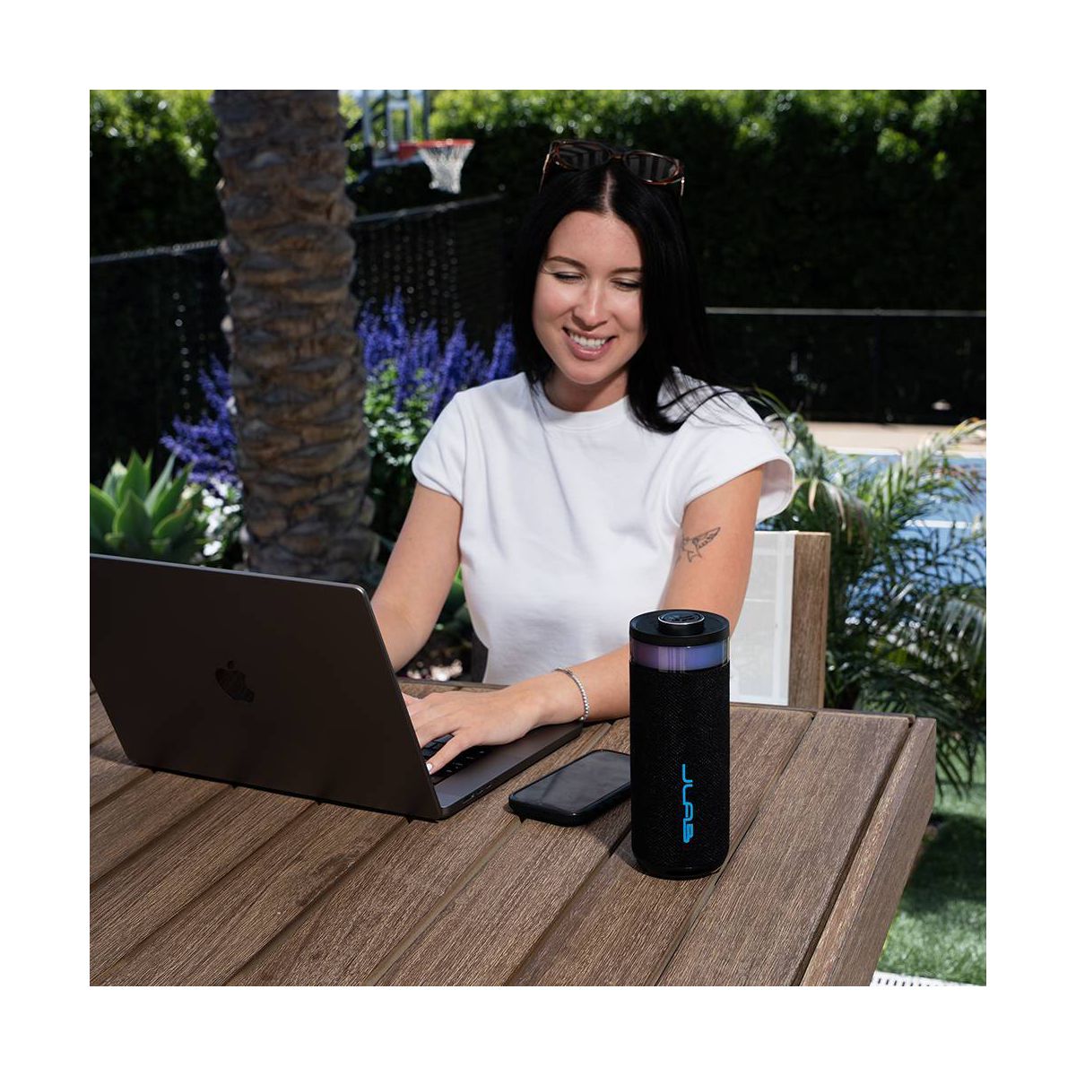 GO get the party started with the Go Party Speaker, where a new level of audio meets non-stop fun. With its sleek cylindrical design, this speaker transforms any space into the perfect party zone. Packing 10 watts of crystal-clear, lab-quality sound, this portable Bluetooth powerhouse lets you customize both audio and lighting effects through the intuitive JLab app, setting the perfect vibe for any gathering. Don't let a splash dampen the celebration – with IPX6 waterproofing, this speaker keeps the party going through any weather. Take your festivities to the next level with JLab Connect mode, and sync up to 100 speakers for the ultimate block party.