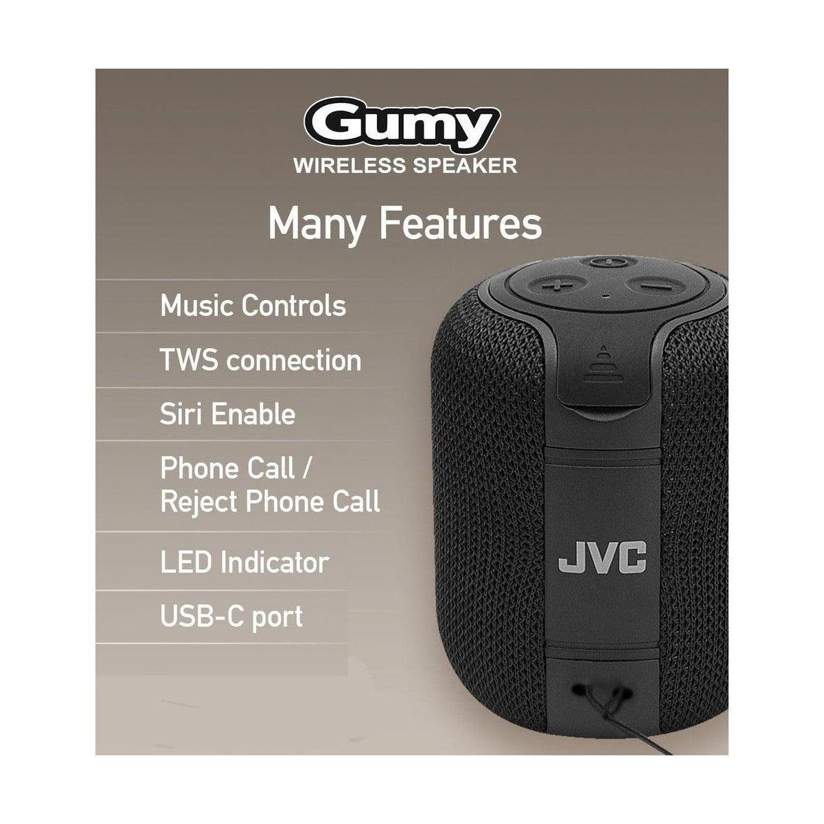 JVC Portable Gumy Pod Wireless Speaker with Surround Sound, Bluetooth 5.3, Lightweight, TWS Capability, USB-C, up to 15-Hour Battery Life - SPSG1BT