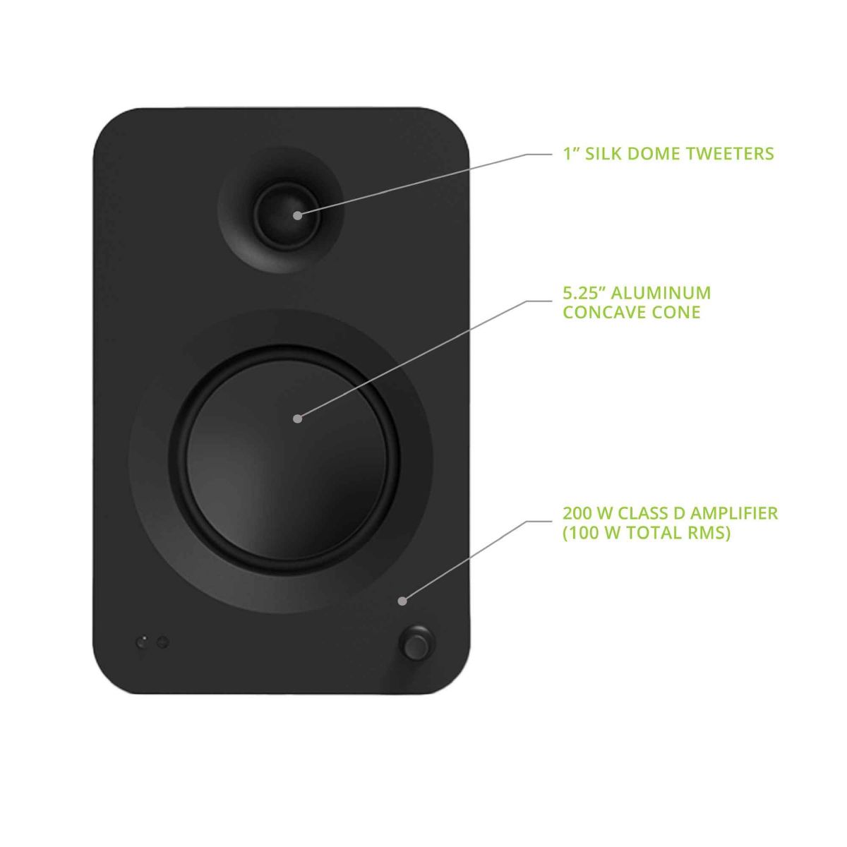 This comprehensive bundle features the Kanto RENMB Powered Bookshelf Speakers and the Kanto SUB8VMW Powered Subwoofer. Enhance your audio experience with the RENMB speakers, offering 200W peak power, HDMI ARC, USB-C, and Bluetooth 5.3 connectivity. These speakers boast 1” silk dome tweeters and 5.25” aluminum concave cone drivers. With automatic standby mode and a variety of input options including HDMI ARC, USB-C, and Bluetooth, the RENMB speakers deliver immersive sound. The compact design measures 7” W x 8.5” D x 10.9” H for each speaker, making them suitable for various spaces.
