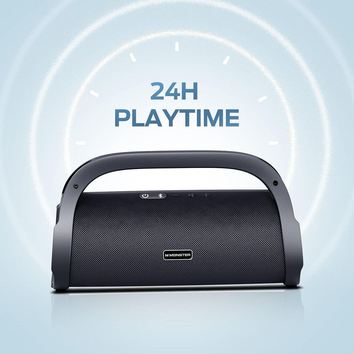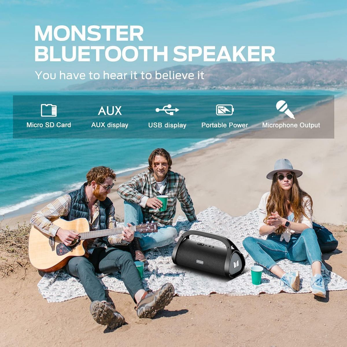 Incredible Stereo Sound & Deep Bass Speakers - Monster's unique Pure Sound technology from 40 years of sound engineering is fine-tuned to deliver the most impactful music experience possible. Built-in 2 subwoofers and 2 tweeters, loud and undistorted treble, and deep and delicate bass, the loud speaker like being in front of the artist, next to them in the studio or on stage. bringing you "closer to the music". You have to hear it to believe it. Up to 24 Hours Playtime with High-Capacity Battery - Built-in high-capacity 20,000mAh Rechargeable Battery supports up to 24 hours of playtime at 50% volume. This outdoor Bluetooth speaker has a charging function, and it only takes 3 hours to fully charge. (Play time varies according to volume and audio content) IPX7 Waterproof - IPX7 Waterproof and shockproof makes wireless speaker suitable for outdoor activities. Take this big speaker to your cruise ship, riding, boating, or party. A good choice for your moments of relaxation, no worries about weather and outdoor condition, keep the music on your way. 100W Powerful Stereo Sound - Get a 100w (120w peak) output power produces punchy bass and true HD sound, the loud Bluetooth speaker can deliver amazing sound, allowing you to feel the body-shaking experience of the Monster Adventurer Max! Advanced Bluetooth 5.0 Connection Technology - Bluetooth 5.0 technology provides fast and stable signal transmission (connection range of 100 feet). TWS mode supports the connection of 2 speakers at the same time allowing you to experience the immersive auditory feast.