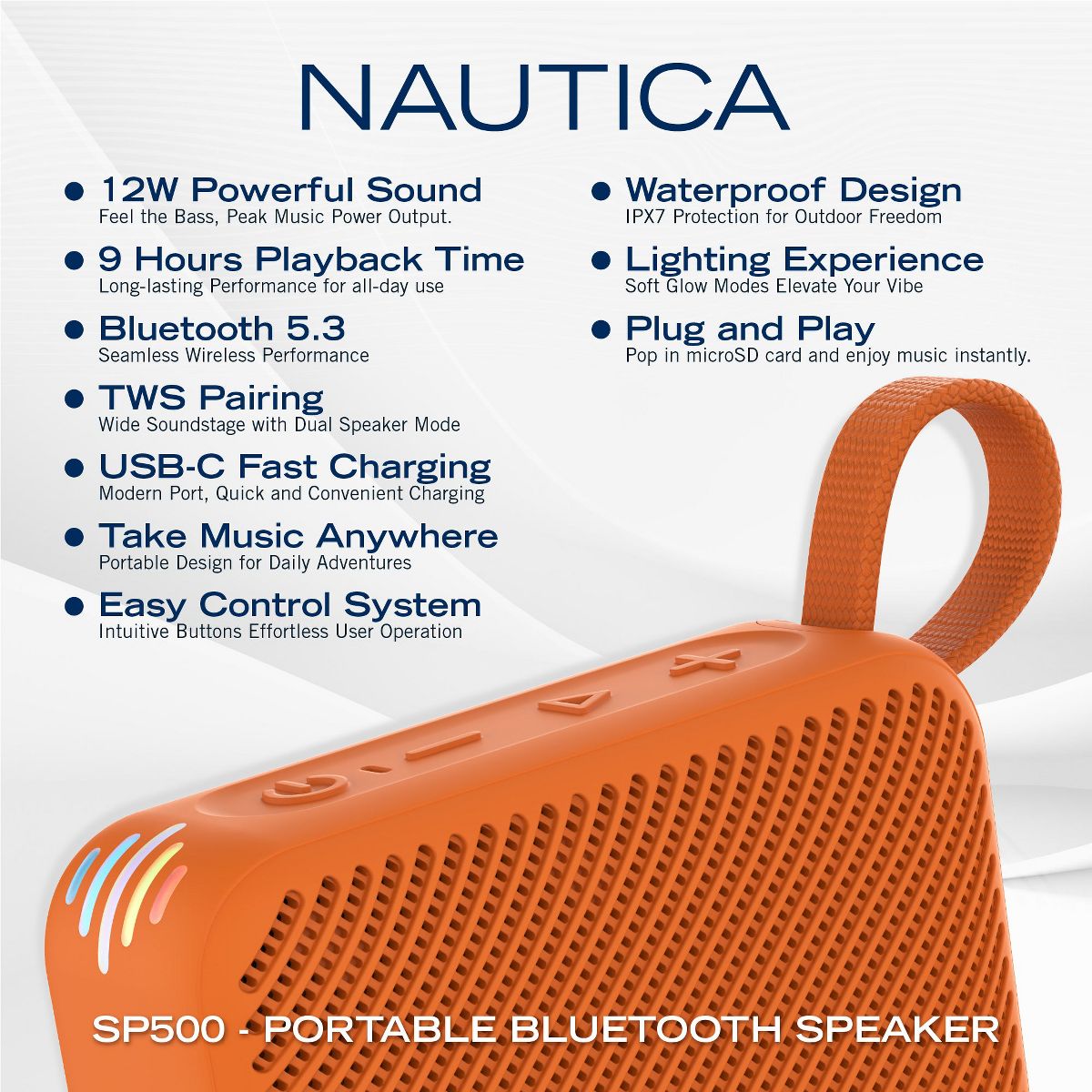 Introducing the Nautica Nayman SP500 Portable Bluetooth Speaker The Nautica Nayman SP500 is a compact portable Bluetooth speaker designed to deliver crystal-clear audio with a powerful 12W output. This device provides deep bass that elevates every listening moment, perfect for various settings. Its sleek and sturdy design is intended for everyday use, whether indoors or outdoors. With an IPX7 waterproof rating, this portable speaker is highly durable. It can withstand splashes, rain, and full immersion in water up to 1 meter for 30 minutes. This feature makes it ideal for beach days, showers, camping trips, and multiple outdoor adventures. Reliable Connectivity and Long-lasting Battery Equipped with the latest Bluetooth 5.3 technology, the SP500 guarantees fast and stable pairing with your devices. It ensures smooth streaming without interruptions or delays. Quickly connect your smartphone, tablet, or laptop within seconds. The built-in battery offers up to 9 hours of continuous playtime. This lets you enjoy your favorite music all day without frequent charging worries. The USB-C charging port provides convenient and quick power replenishment when needed. Lightweight Portability and Convenient Design Weighing lightly and compact, this speaker fits easily in backpacks, tote bags, or large pockets. A durable, built-in strap lets you hang or carry it wherever you go. It is the perfect solution for music lovers on the move. Designed with everyday portability in mind, the SP500 is rugged enough for travel and outdoor use. Its compact form does not sacrifice sound quality, making it a top choice for audio enthusiasts. Immersive Sound with TWS Pairing Mode For a richer stereo sound experience, the Nautica Nayman SP500 supports True Wireless Stereo (TWS) mode. You can pair two SP500 units to enjoy fully immersive and wider sound coverage. This feature suits parties, gatherings, or home use well. The TWS mode amplifies your music, filling larger spaces with balanced and clear audio. It elevates the speaker from a simple device to a powerful sound system. Why Choose This Portable Bluetooth Speaker? Beyond its technical features, the Nautica Nayman SP500 combines style and function. It is available in multiple color options, allowing you to select the perfect match for your personality. Its minimalist yet modern look adds elegance to your music setup. This device is not only great for personal use but also makes a fantastic gift thanks to its durable build and reliable performance. Whether you want a speaker for outdoor fun or home relaxation, the SP500 meets your needs easily. Versatile Use Cases for Every Lifestyle This Bluetooth speaker adapts to various lifestyles and environments. Use it at home for casual listening or in social settings such as poolside parties or beach trips. It is also perfect for shower playlists and camping due to its waterproof design. The blend of portability, long battery life, and sound quality means it keeps pace with your busiest and most relaxing days. This truly is a multi-functional device for audio lovers everywhere. Explore More Portable Audio Solutions If you want to expand your audio collection, we offer other excellent products within the Nautica range. Check out the Nautica Urban SP600, Nautica SP610, and Nautica S100. These options provide unique features to suit different audio preferences and uses. Visit our Mobile Accessories collection to browse a broad selection of portable audio devices and complementary accessories. This collection supports both casual and professional users who seek versatile, high-quality products.