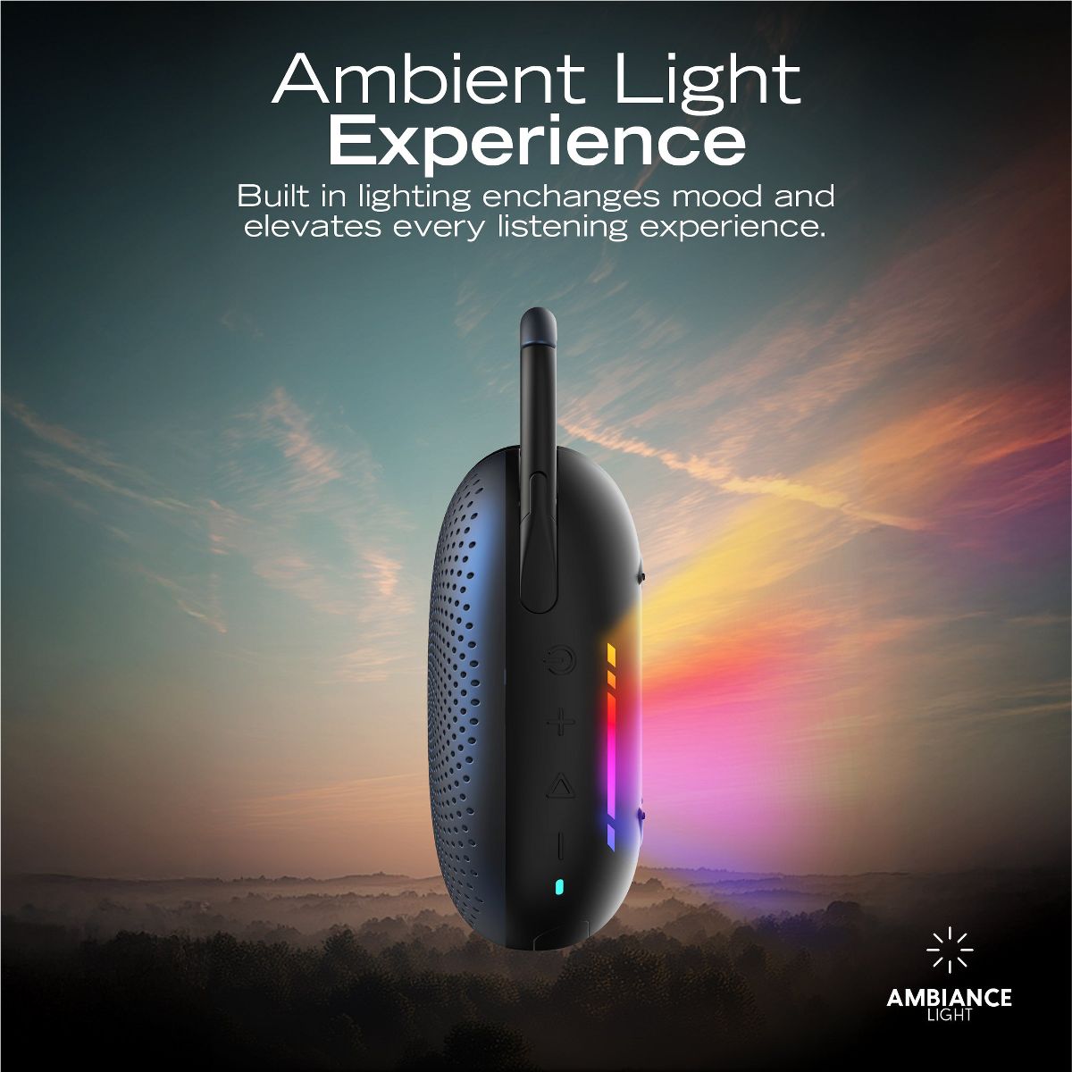 The Nautica Nayman SP700 is a waterproof portable Bluetooth speaker designed for powerful 16W performance in a lightweight, compact body. It delivers crisp highs, rich mids and deep bass for an immersive listening experience. With an IPX7 waterproof rating, it withstands rain, splashes and full immersion up to 3.3 ft for 30 minutes, making it ideal for the beach, poolside, shower, hiking and outdoor adventures. The 10 hour battery and Bluetooth 5.3 provide fast pairing and reliable all day play, while USB-C offers convenient charging. Pair two units wirelessly with TWS mode for true stereo sound. Built in RGB ambient lighting adds a dynamic visual touch that enhances mood and atmosphere. Available in multiple colors, the SP700 is designed to keep your music clear, bold and ready for every moment.
