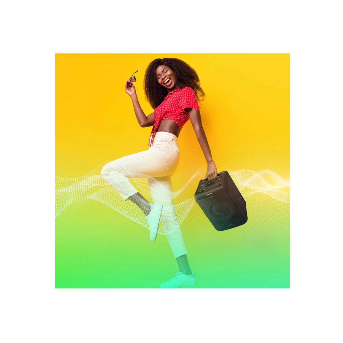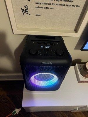 Im amazed with how cool this Panasonic speaker system is! The sound quality blows me away, it's incredibly crisp with rich surround sound that really immerses you in the music. The audio is just outstanding! Plus, the powerful and durable battery keeps the party going for hours on end. What I love most is its sleek design, making it super easy to grab and take anywhere. And let me tell you about the LED lights! They burst with vibrant colors that dance along with the rhythm of the music, adding an extra layer of excitement to any gathering. It’s so user-friendly too! Pairing it with my Bluetooth devices is a breeze, and I can even plug in a microphone for some karaoke fun! Its important to mention that it came with different plugs to connecting to power, making it perfect for travel. This speaker truly elevates every moment! Very recommend