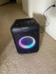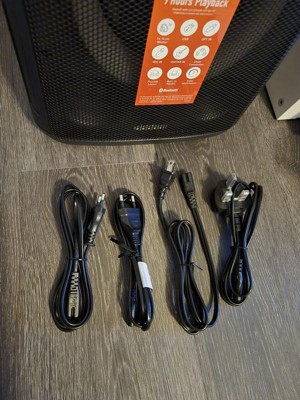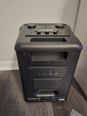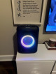 This party-sized speaker is awesome! The light display is a very cool touch and sound quality is excellent. I can really blast this speaker and still maintain good sound and bass. It has a carrying handle in the back which makes it easy to transport AND it has the option to be cordless if it’s charged. Easy to connect to through Bluetooth and cords also.