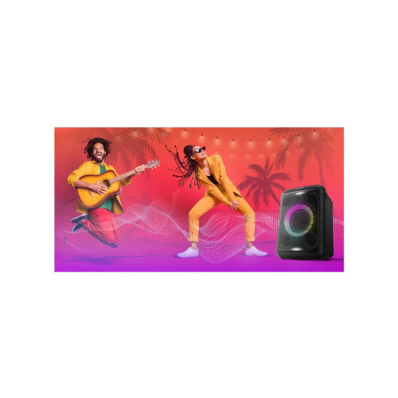 Take the party anywhere with the BMAX5 Portable Speaker. Whether at the beach, park, or home, its built-in rechargeable battery, powerful sound, and vibrant light show will keep the good vibes going. Packed with 14cm woofers, tweeters, bass reflex ports, and 75W of audio power, this party box speaker delivers rich, room-filling sound in a compact package. With Bluetooth, AUX, USB, and up to 9 hours* of playtime, it's built for fun anytime, anywhere!Powerful Sound That Makes You Want to MoveFrom full-on bass lines to crystal-clear vocals and soaring highs, BMAX5 delivers detailed powerful sound across all frequencies, with 14cm woofer, two tweeters, and two bass reflex ports, all in one solid package. And for bass lovers, there’s Bass Boost to bring things down low.Recorded or Live MusicThis party box is your hookup to a good time, no matter the event. Stream tunes from your phone or TV, plug in a karaoke mic (or go wireless), and even shred on the guitar! Plus, you can daisy-chain more than one BMAX party box to make even bigger sound.So PortableThis portable party box, with a built-in carry handle and a compact design under 20 inches, is cable-free and ready to go wherever you do. Ideal for street dancing, workouts, gym sessions, or chilling with friends—take the music and fun anywhere with ease and convenience!Cue the Light ShowLight up the night with seven vibrant colors and 12 different lighting patterns that can even work with the beat. This party speaker with two strobe lights add extra energy to any party. Plus intuitive controls with big buttons, dials, and an LED input screen make operation simple—no fiddly switches, just easy access to your favorite tunes. It's a vibe that'll turn any space into the ultimate dance floor!Keeps the Party GoingWith 9 hours of battery life. No need to worry about the music stopping—let the fun last as long as you want! *Performance based on predefined settings..