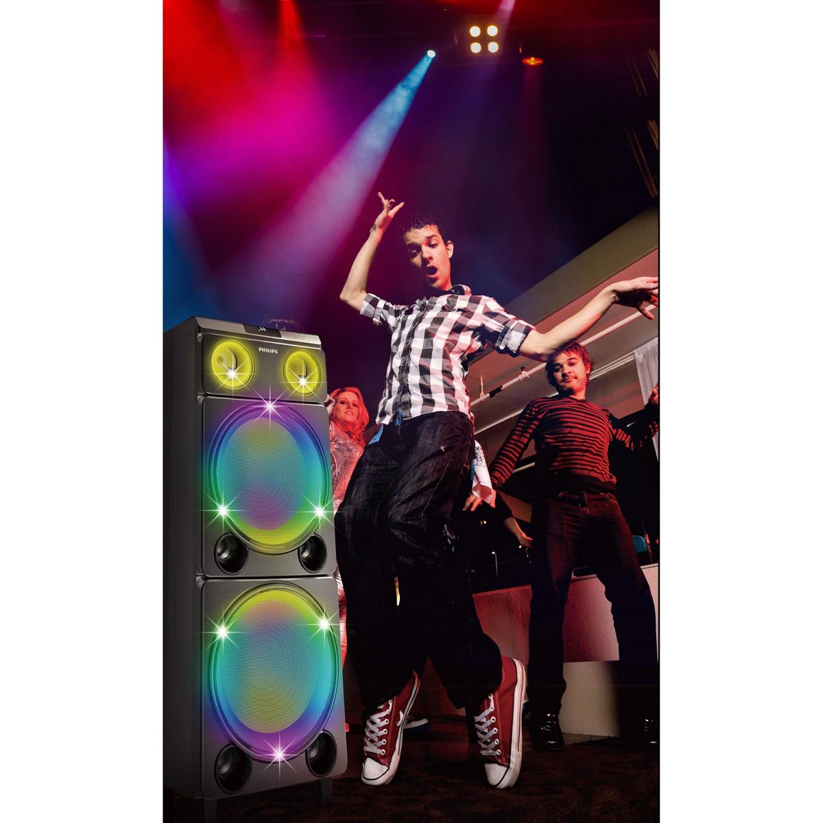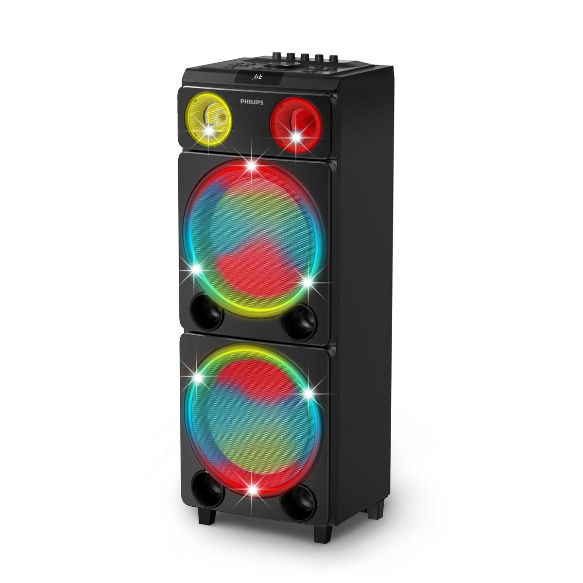 PHILIPS Bluetooth Party Speaker with 130W Sound, Deep Bass, Rainbow LED Lights, DJ Effects, Karaoke, TWS Pairing, and Dual 12" Woofer