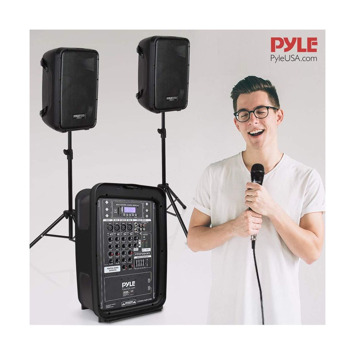 Elevate your audio experience with the Pyle 300W All-in-One DJ Speaker & Mixer Bundle Kit. This comprehensive kit features dual 8’’ PA speakers and an 8-channel powered amplifier mixer, delivering robust sound ideal for performances and events. With Bluetooth streaming capabilities, you can easily connect your favorite devices and play music wirelessly from up to 65 feet away. The active 2-way full-range stereo sound ensures clarity and depth, while the independent channel controls give you the freedom to adjust treble, bass, and effects to suit your needs. The rugged molded cabinet design is built for durability, making it perfect for on-stage performances and public gatherings. Whether you’re hosting a party or a professional event, this kit offers everything you need to bring your sound to life.