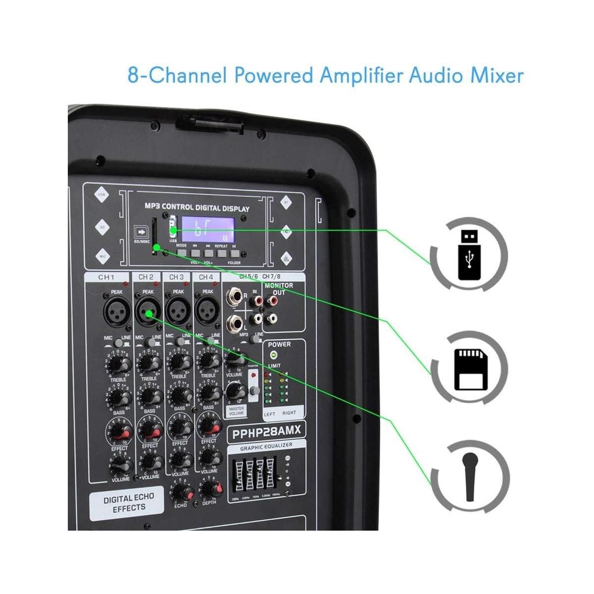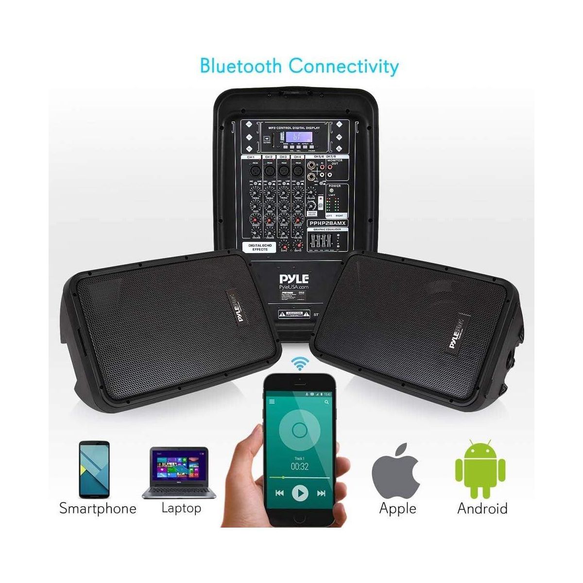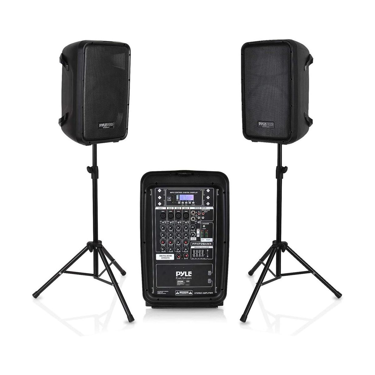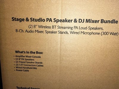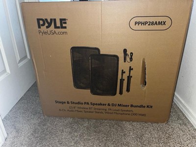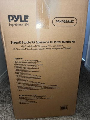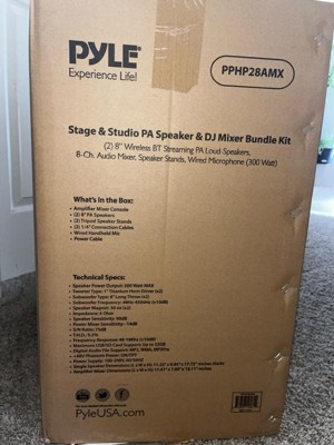Pyle 300W All-in-One DJ Speaker & Mixer Bundle Kit - Bluetooth, 8-Channel Amplifier, 2 Speakers