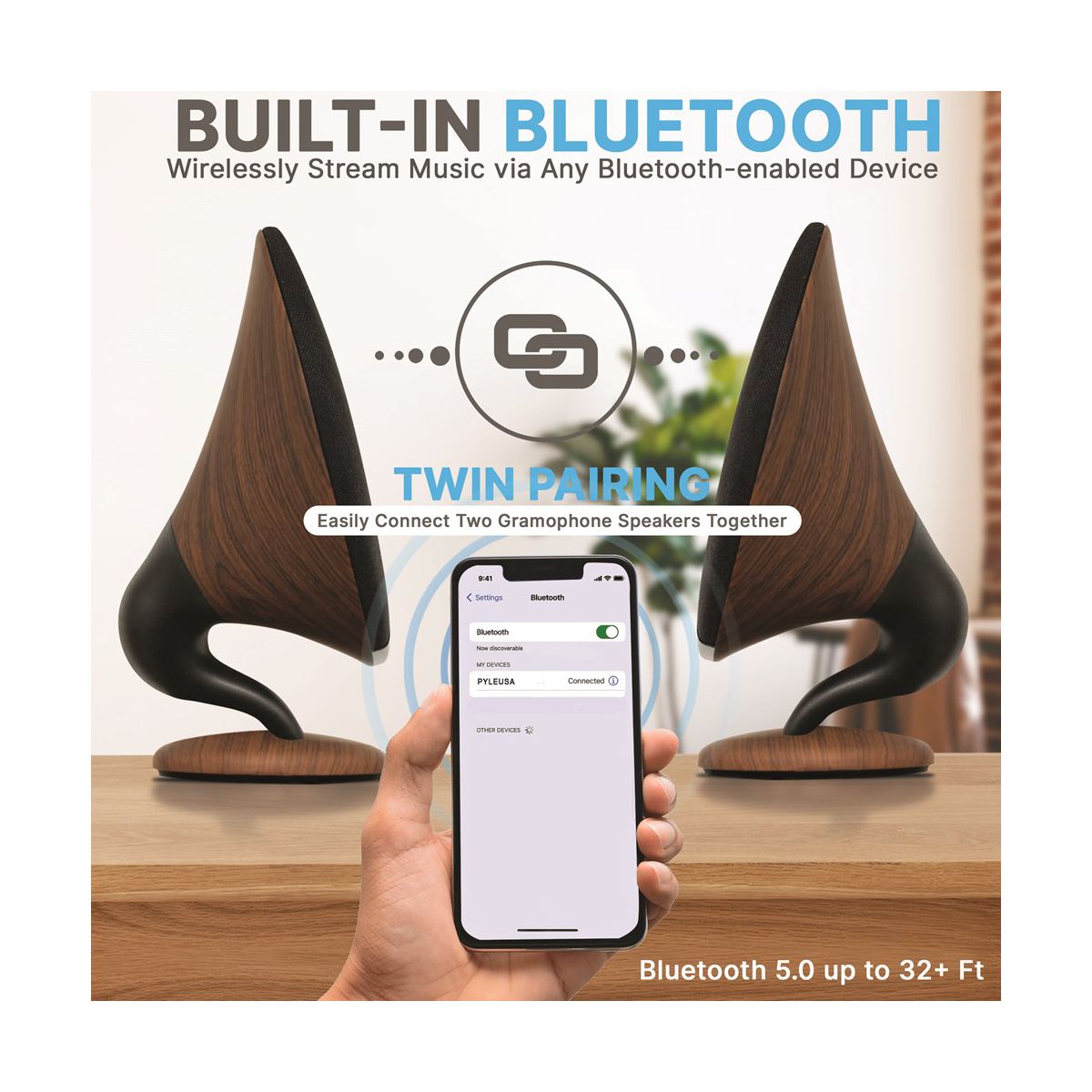 Pyle Wireless Bluetooth Streaming Gramophone Speaker with Built-in Subwoofer - PGMSP100