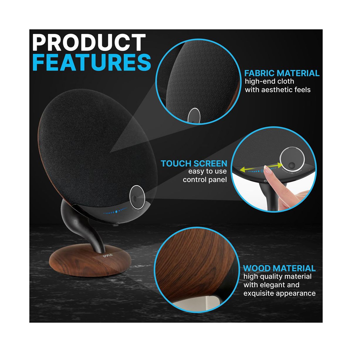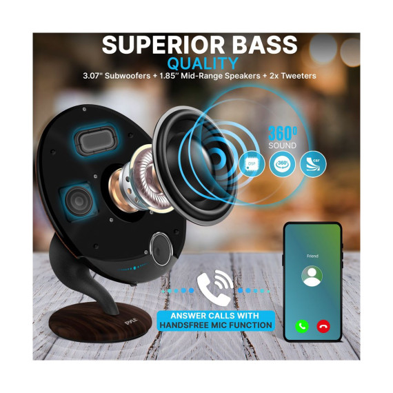 The Pyle PGMSP100 Wireless Bluetooth Gramophone Speaker combines classic design with modern audio technology. Featuring a built-in subwoofer and mid-range speakers, this gramophone delivers symphonic sound quality. The Bluetooth connectivity allows for wireless streaming from any device, while the elegant touch screen and rotary volume control offer intuitive operation. This speaker is also capable of twin pairing, allowing you to connect two units for a stereo experience.