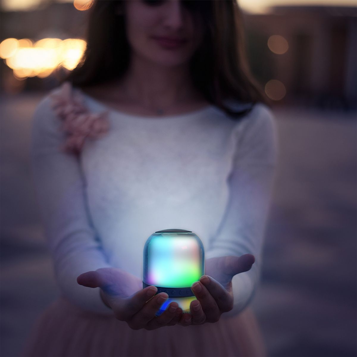 Hold this party starter in the palm of your hand! The QFX® BT-27 is a small, portable, rechargeable Bluetooth® speaker with multi-color LED party lights. Listen to your favorite music streaming over Bluetooth®. Turn on the FM radio or play music files stored on USB drives or microSD™ cards. Connect a portable audio device to the 3.5-mm aux input. Add a second BT-27 (sold separately) and enjoy True Wireless Stereo (TWS) sound!