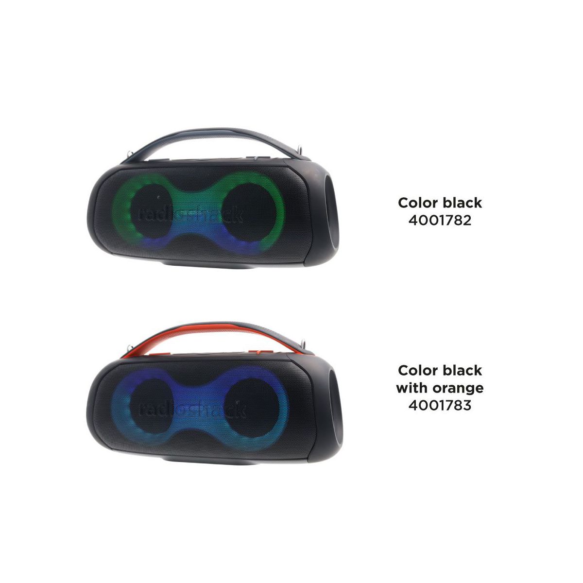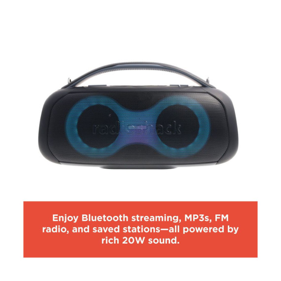 RadioShack Portable Bluetooth Speaker 20W IPX5 Black and Grey With RGB Lights And Handle with TWS For Pairing