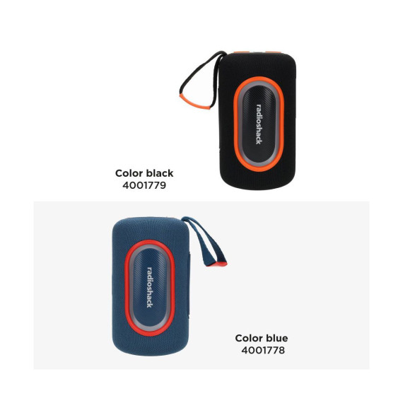 RadioShack Portable Bluetooth Speaker 20W IPX5 Splashproof Blue and Red With RGB lights and Strap with TWS For Pairing